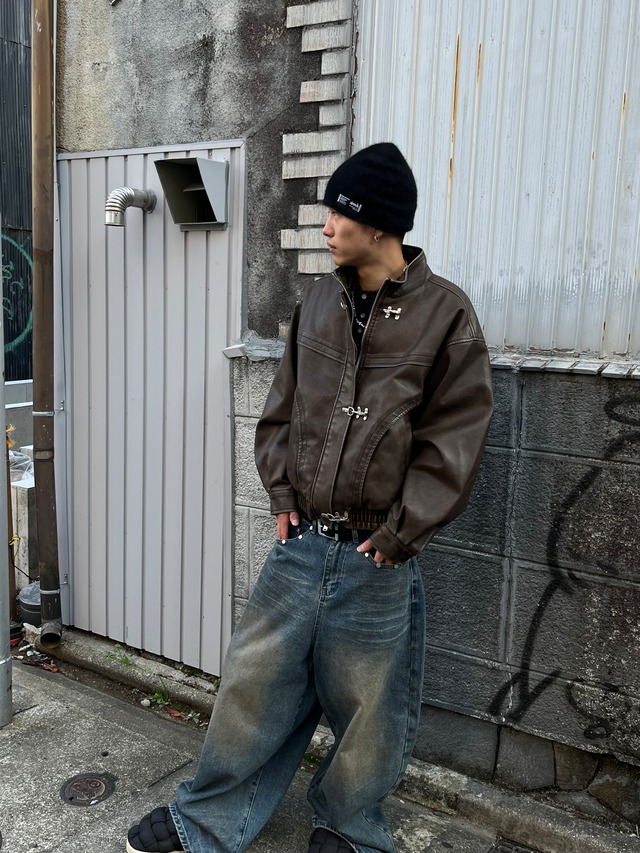 程よい光沢感とメタルフック留めが アクセントになったレザーブルゾン。 韓国らしい洗練された雰囲気で ボトムスを選ばず幅広くマッチ✮⋆˙ スタイリングを一段引き締めてくれる 主役級アウターです!! サイズ 肩幅 58cm 袖丈 59cm 身幅 64cm 着丈 63cm こちらは平置きでの寸法です。 あくまでも目安としてご参考下さい。 メンズモデル身長:172cm