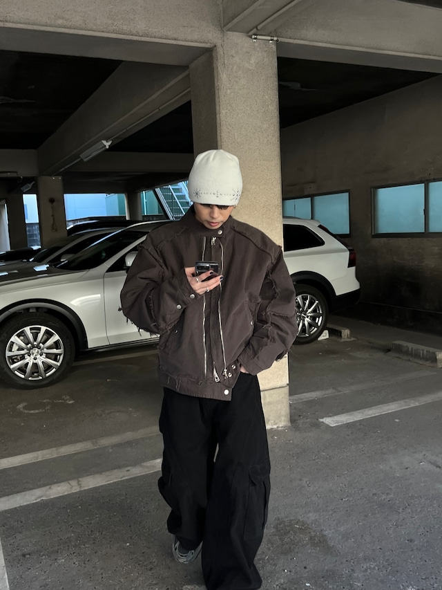 フロントのWzipデザインに フリンジデザインが特徴のこちらのアイテム 裏地がキルティングになっており 見た目以上に保温性が高く、軽くて暖かい! 羽織るだけでこなれた韓国スタイルに✮⋆˙ サイズ 肩幅 59cm 袖丈 65cm 身幅 69cm 着丈 66cm こちらは平置きでの寸法です。 あくまでも目安としてご参考下さい。 メンズモデル身長:172cm