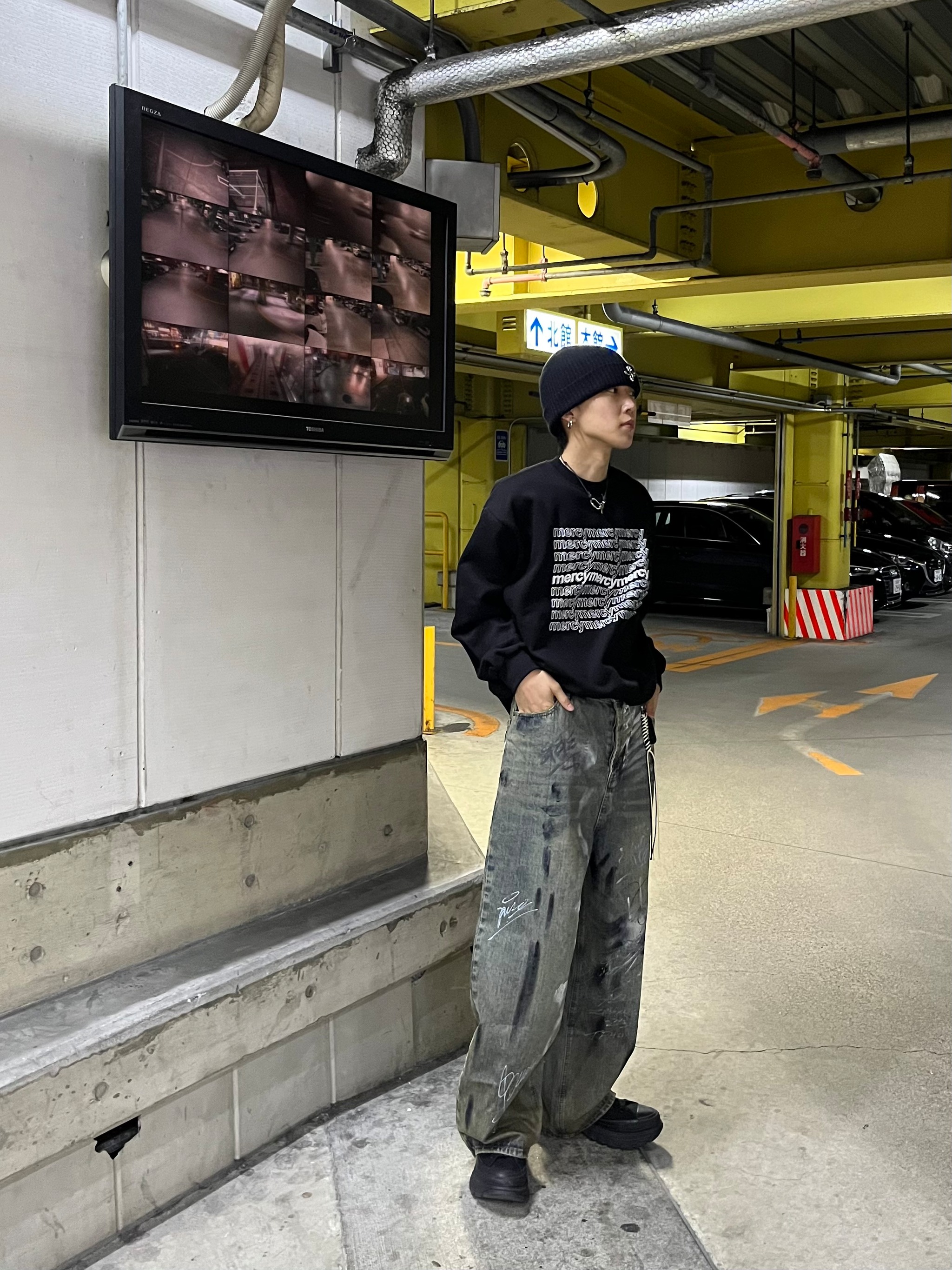 韓国ストリートらしい褪せた色合いで