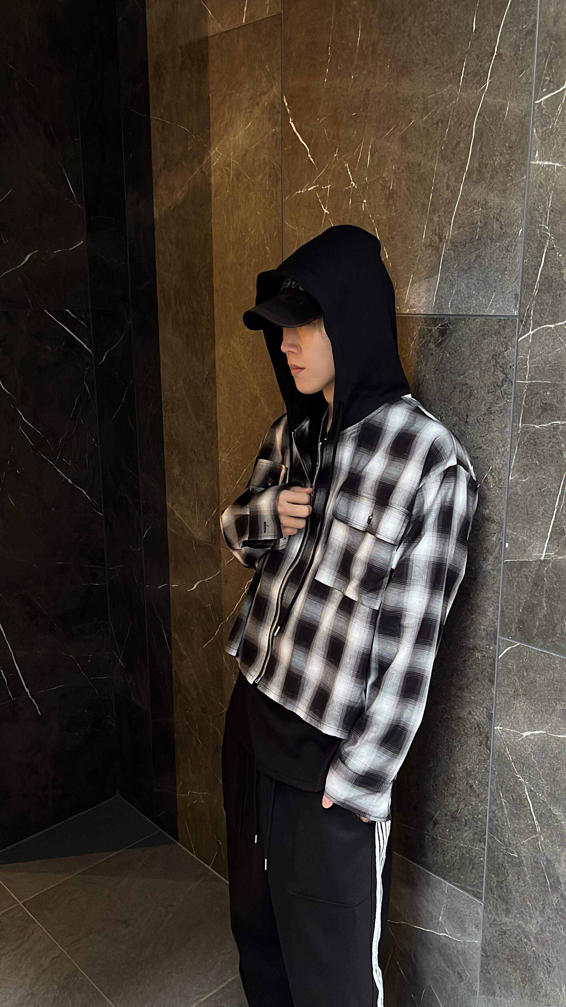 【即納】韓国トレンドファッション docking check zipshirt