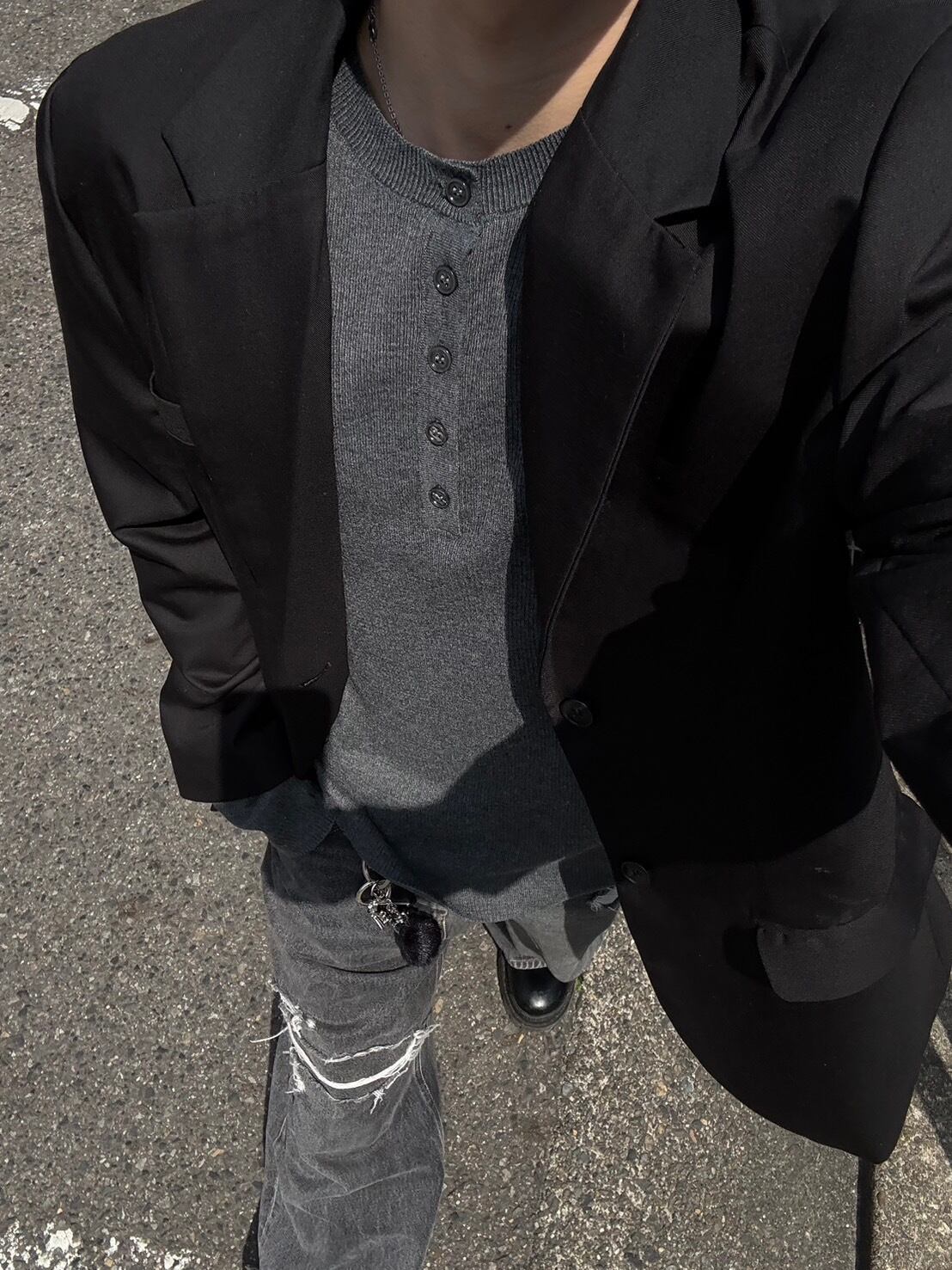 【即納】RADIANT Henry neck button longtee