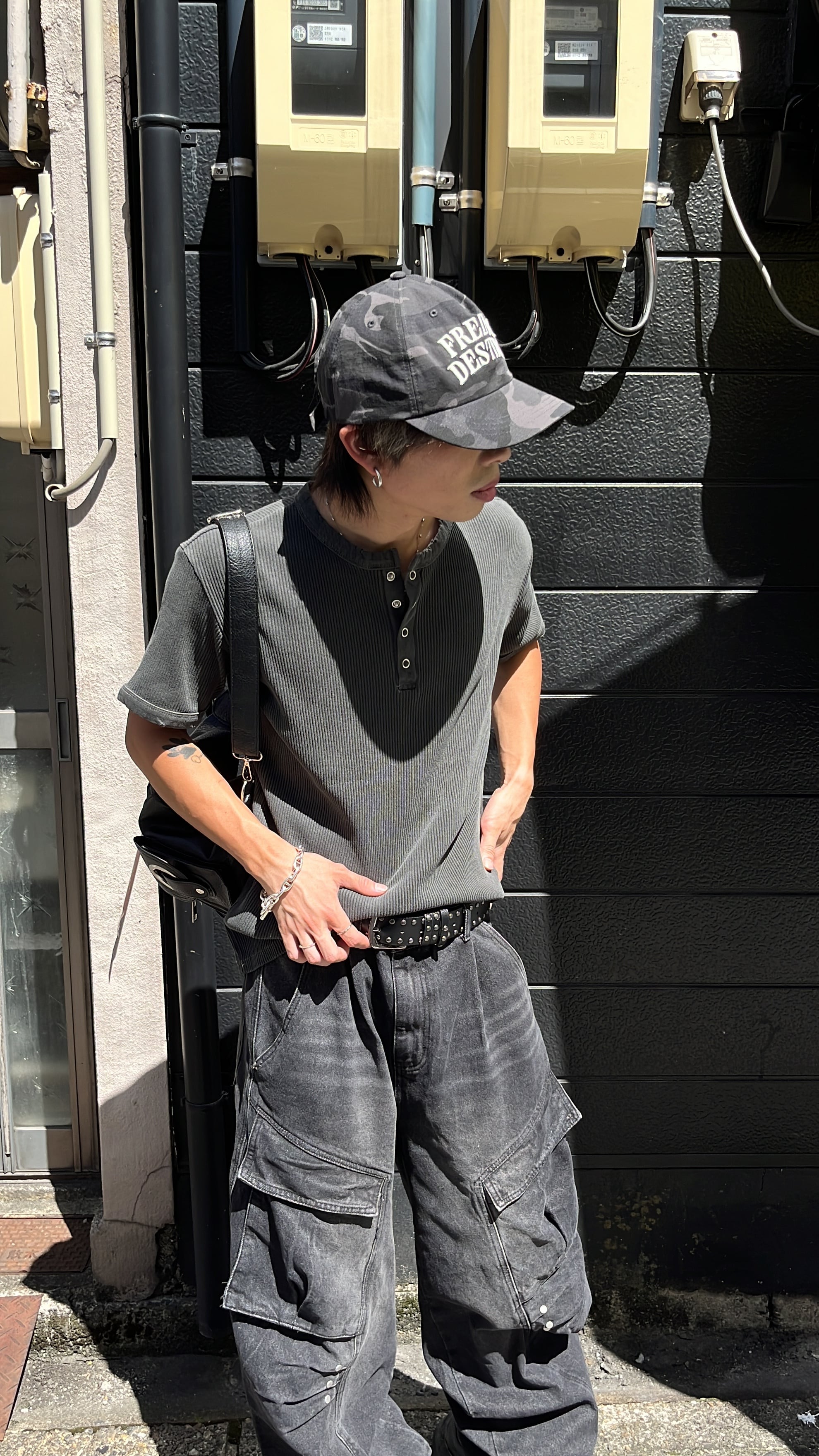 【即納】韓国トレンドファッション Vintage henry neck Tee