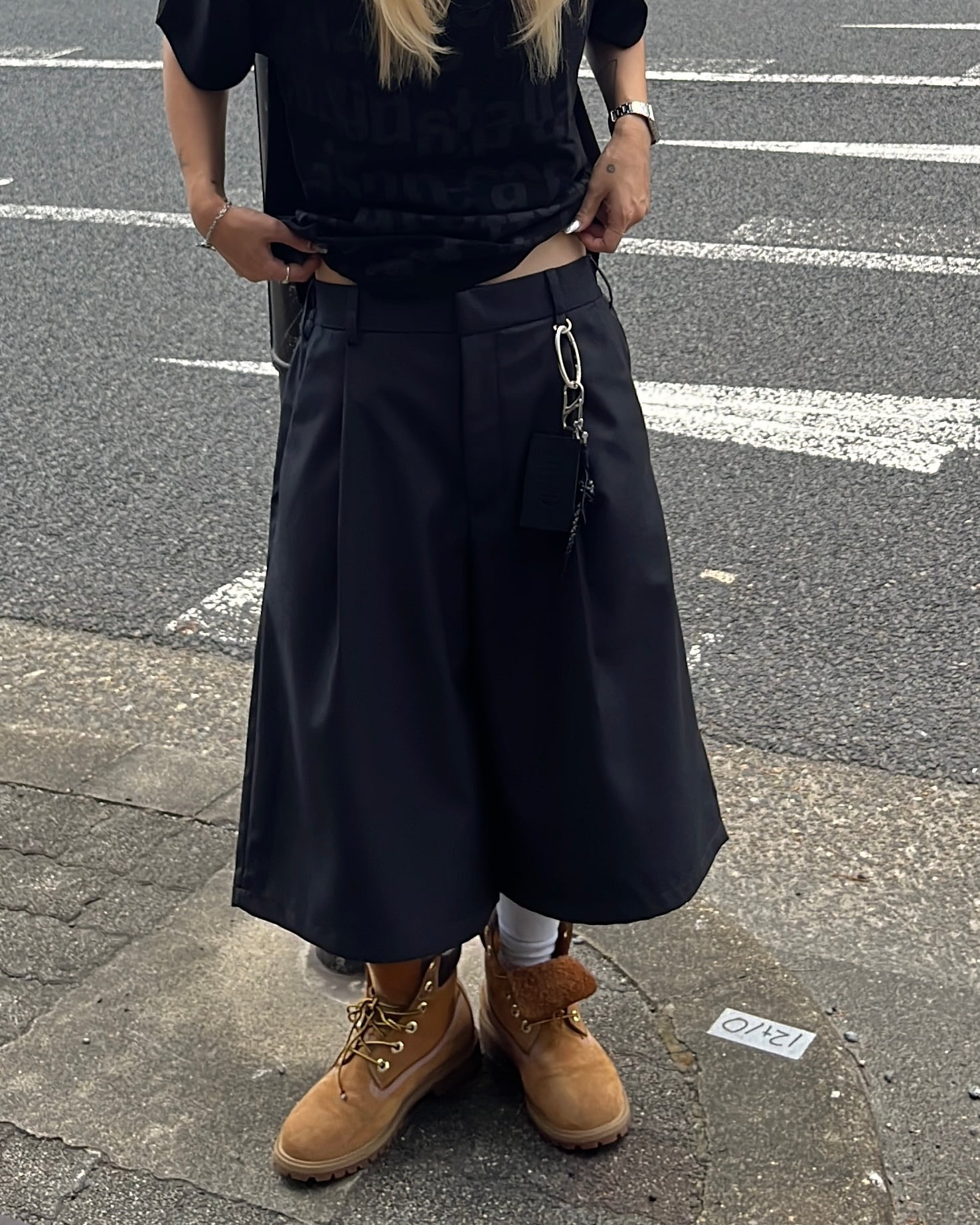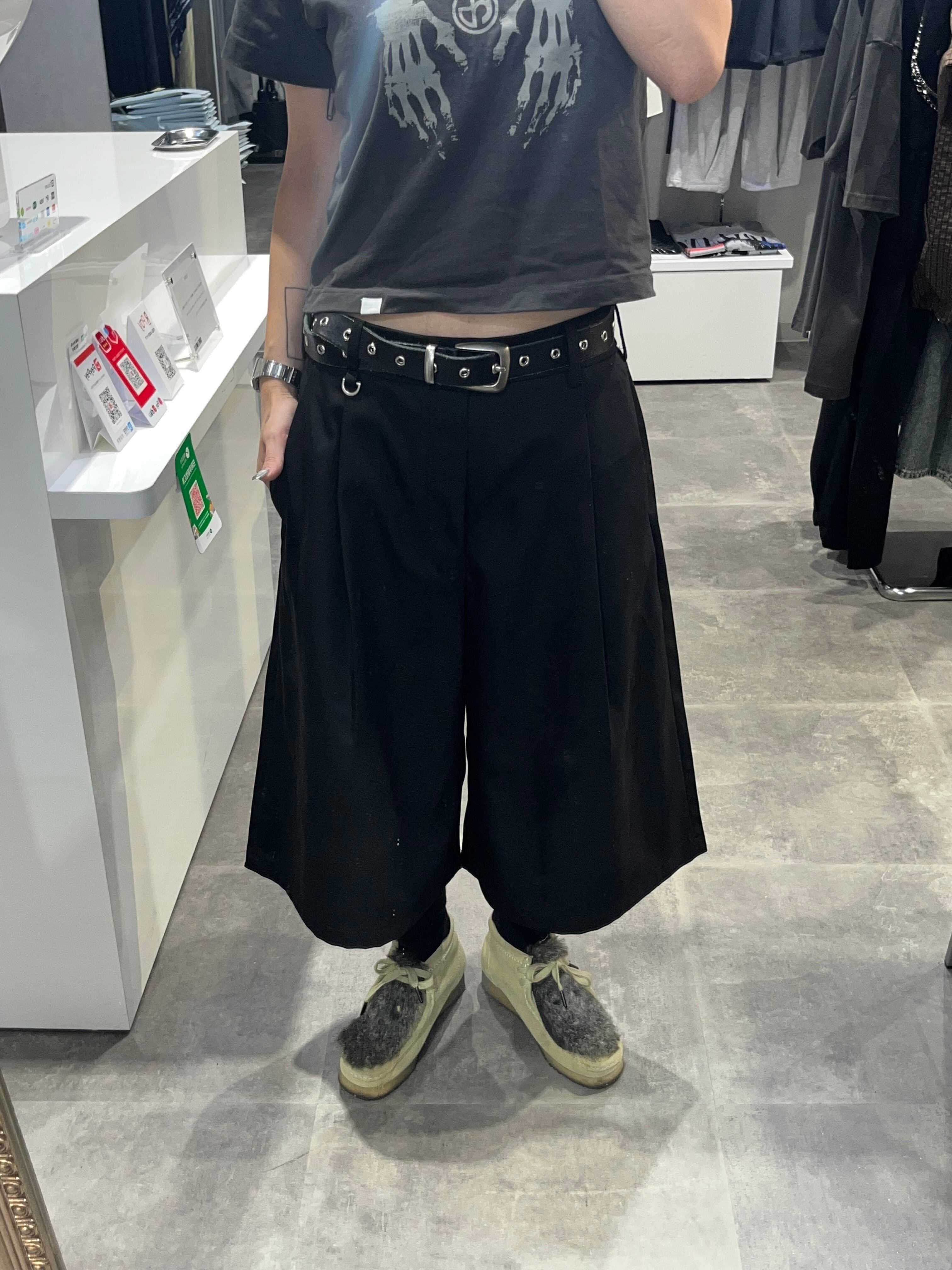 【即納】韓国トレンド slacks 2tuck half pants