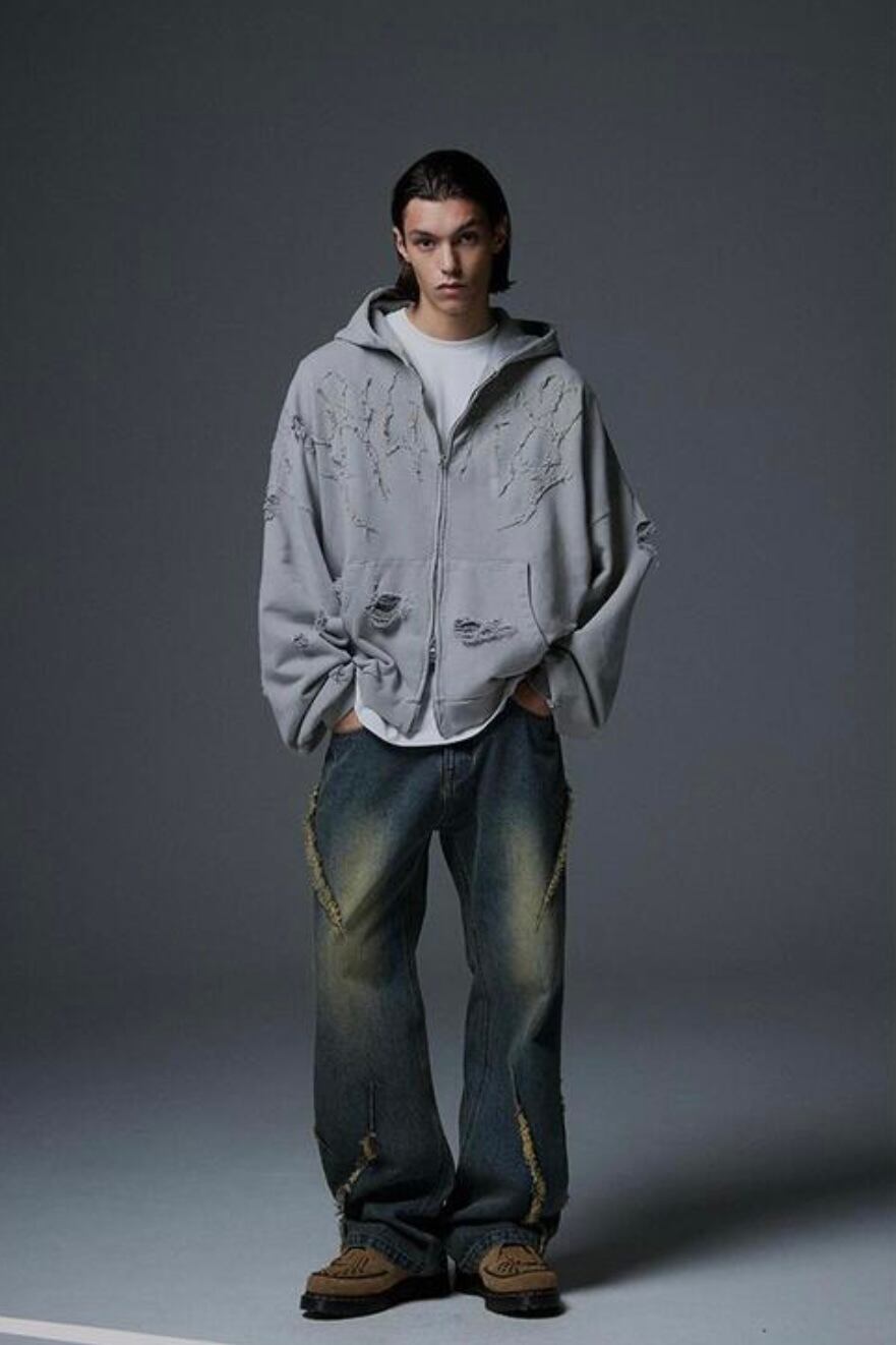 【即納】NOT4NERD Destroyed N4ND Thunder Logo Pigment Hood Zipup