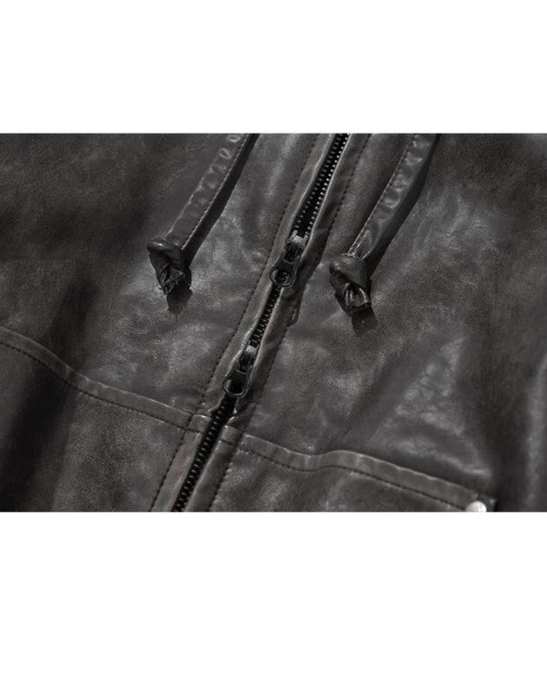 【即納】NOT4NERD Crop Leather Vintage Hooded Jacket