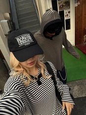 【即納】韓国トレンド henryneck border hoodie