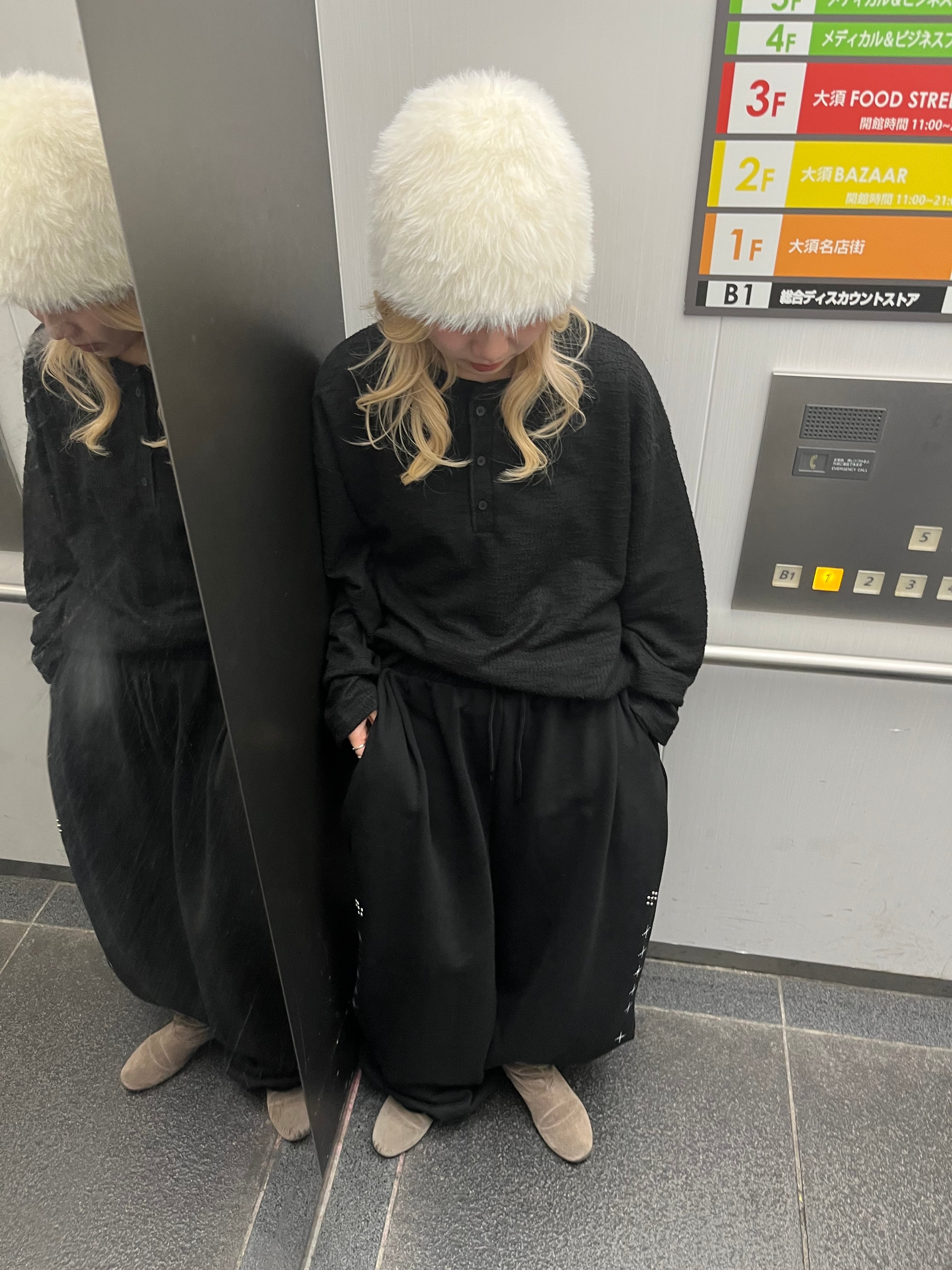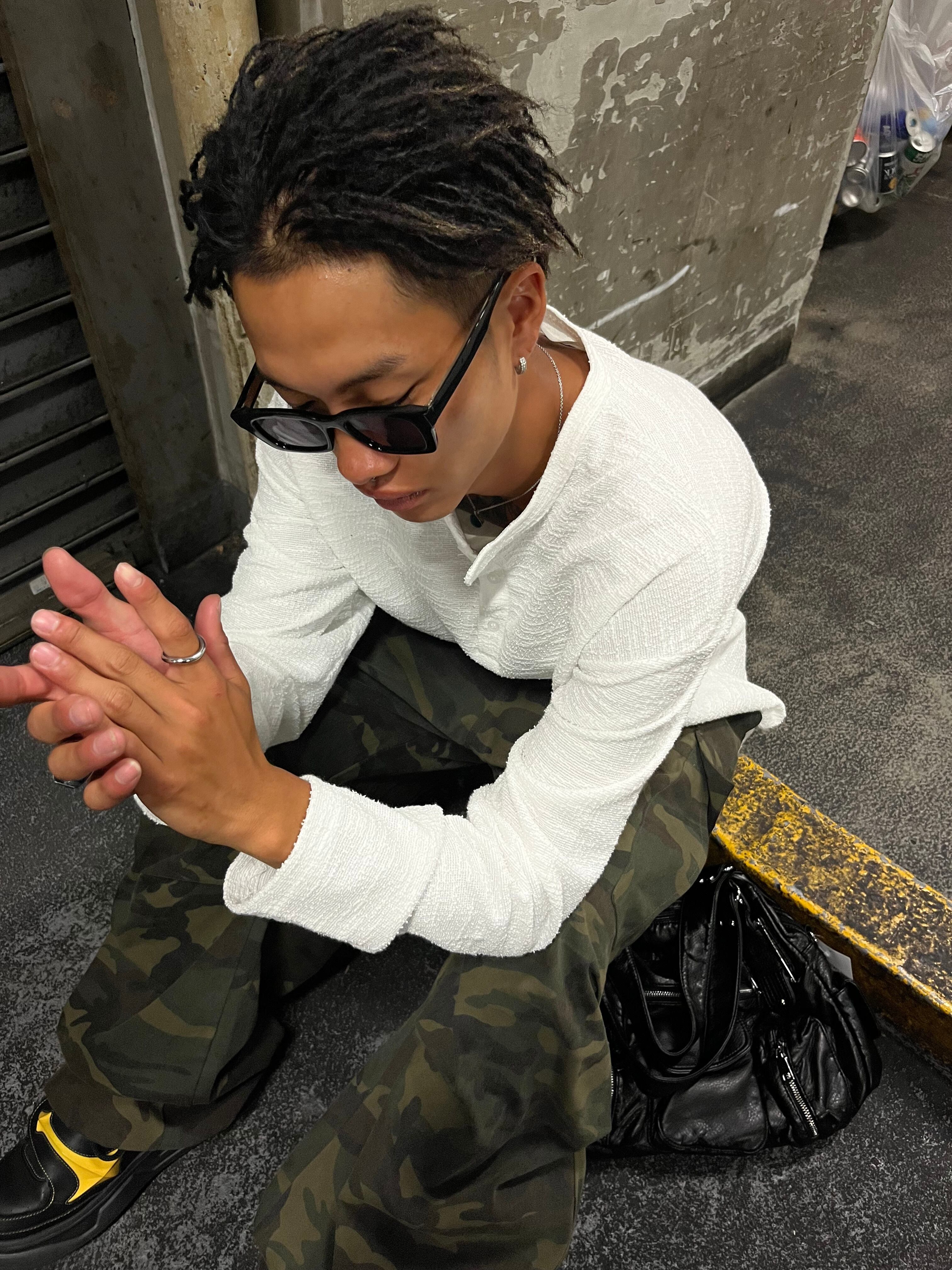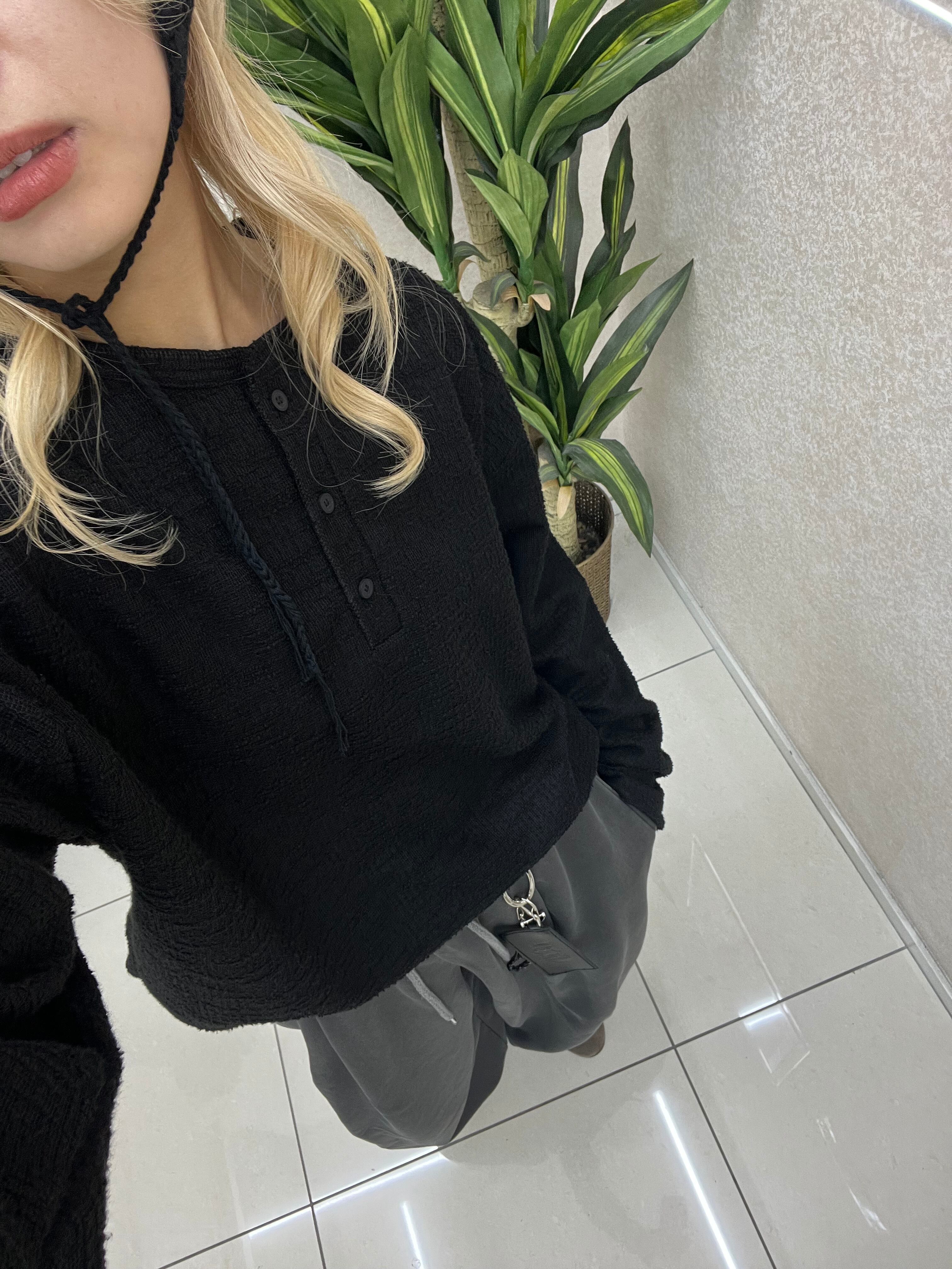 【即納】韓国トレンド tweed henryneck tee