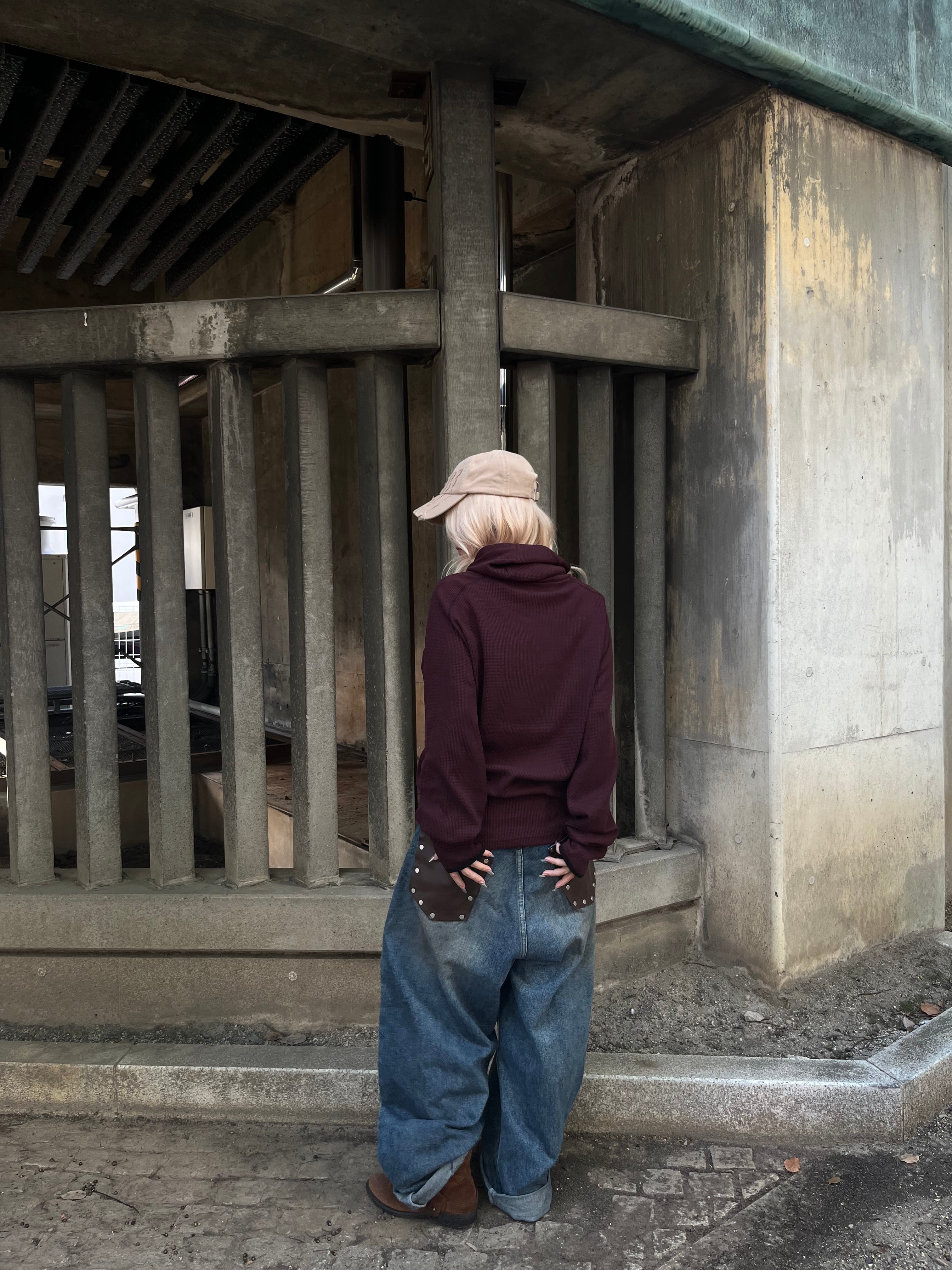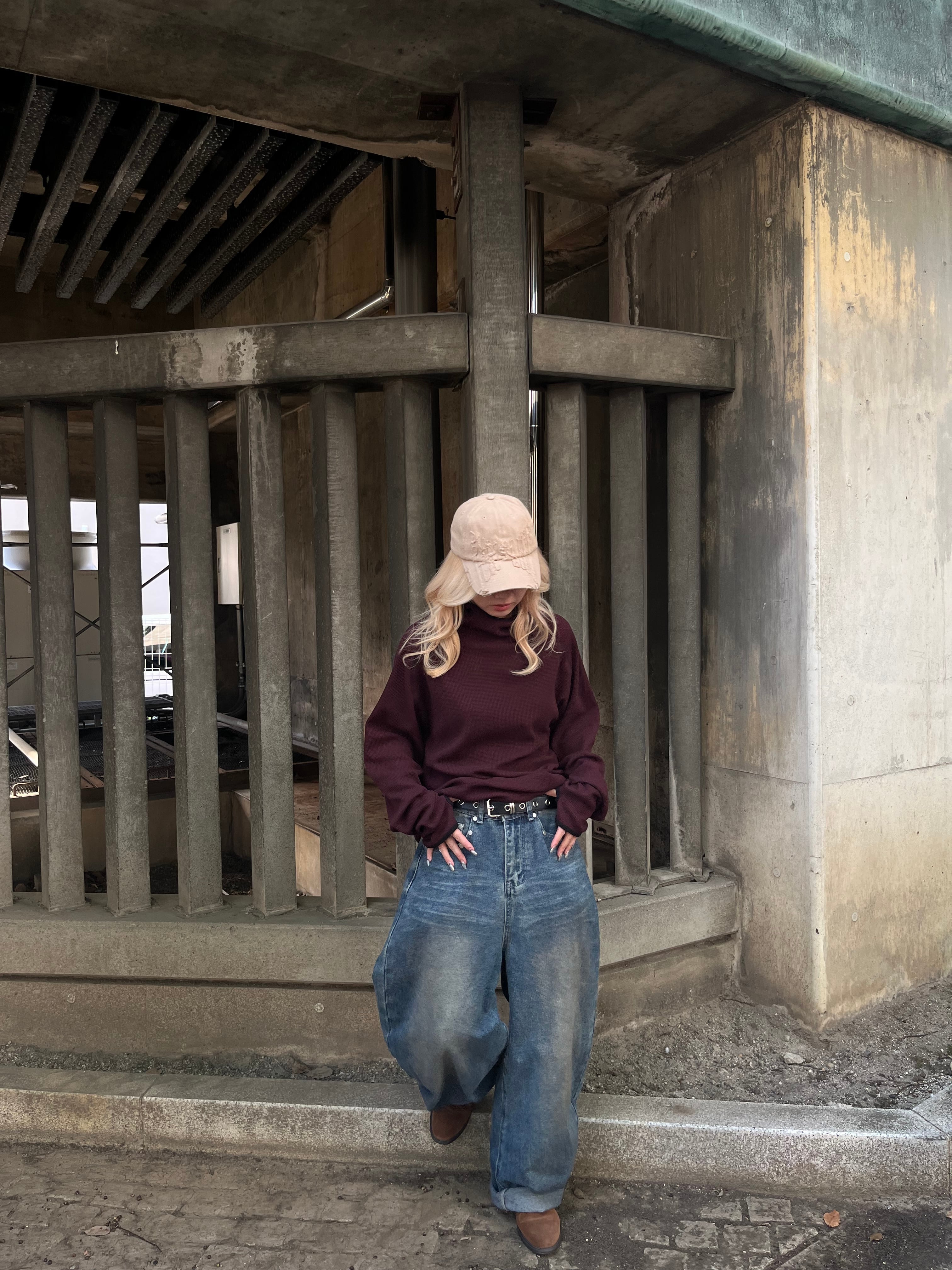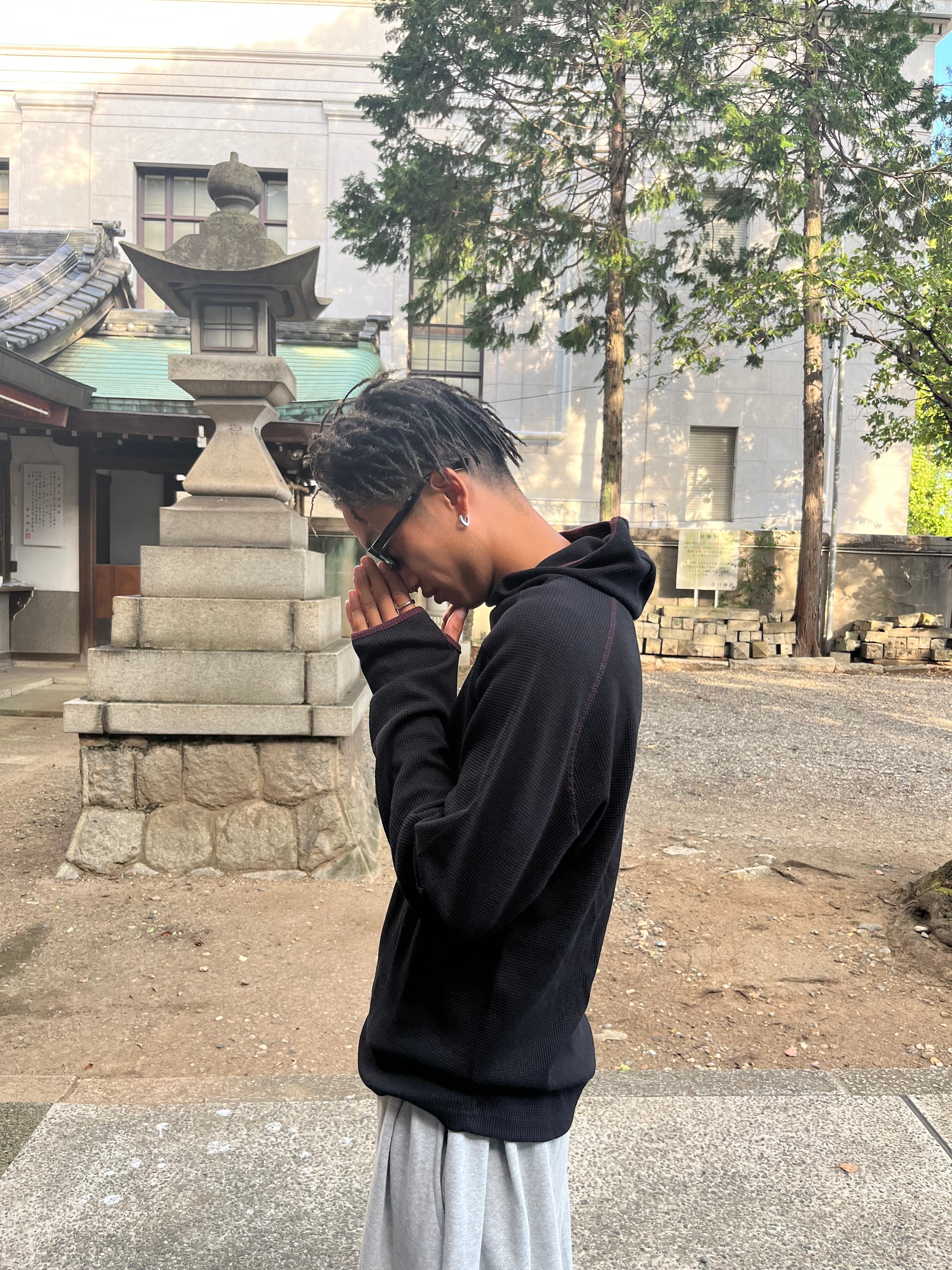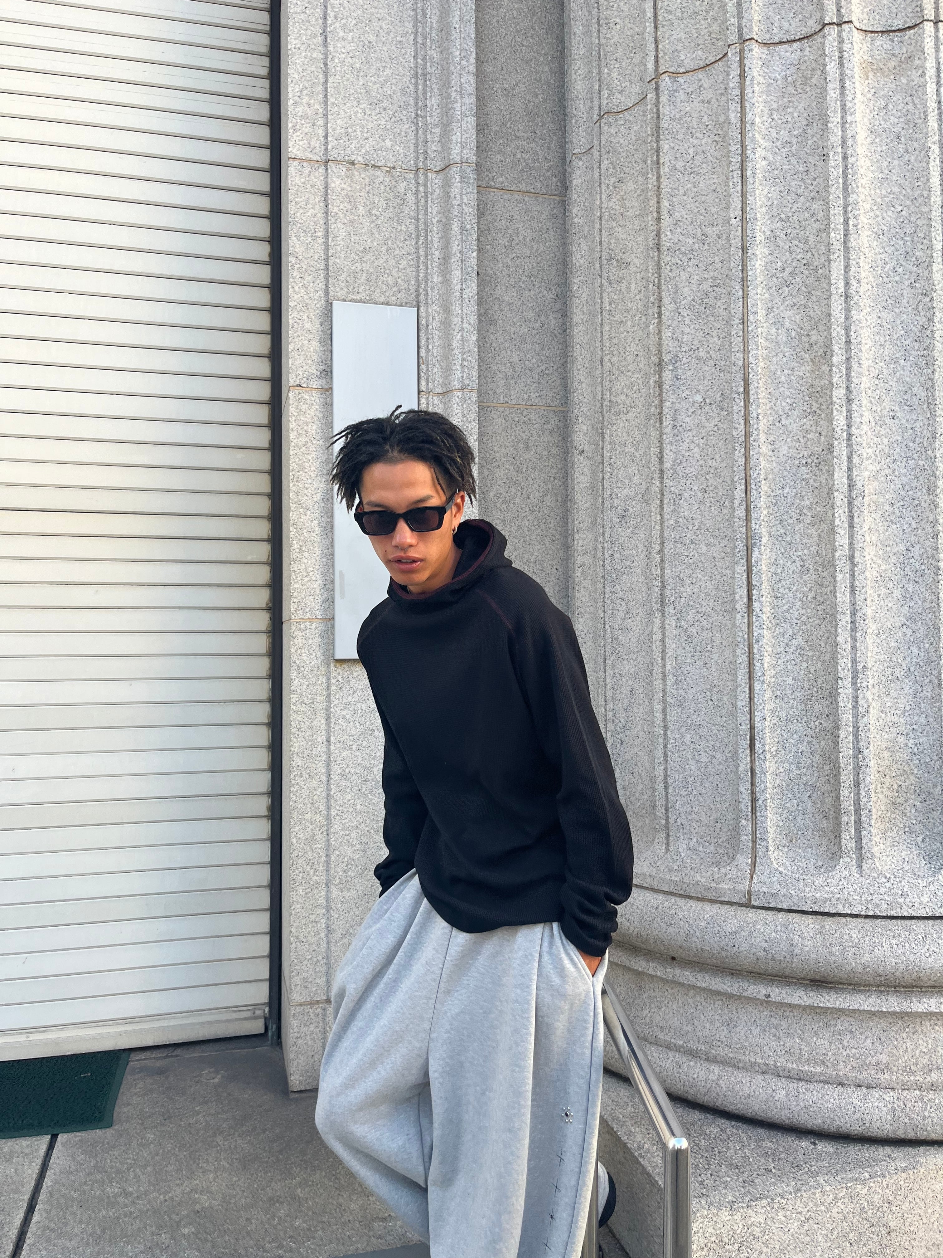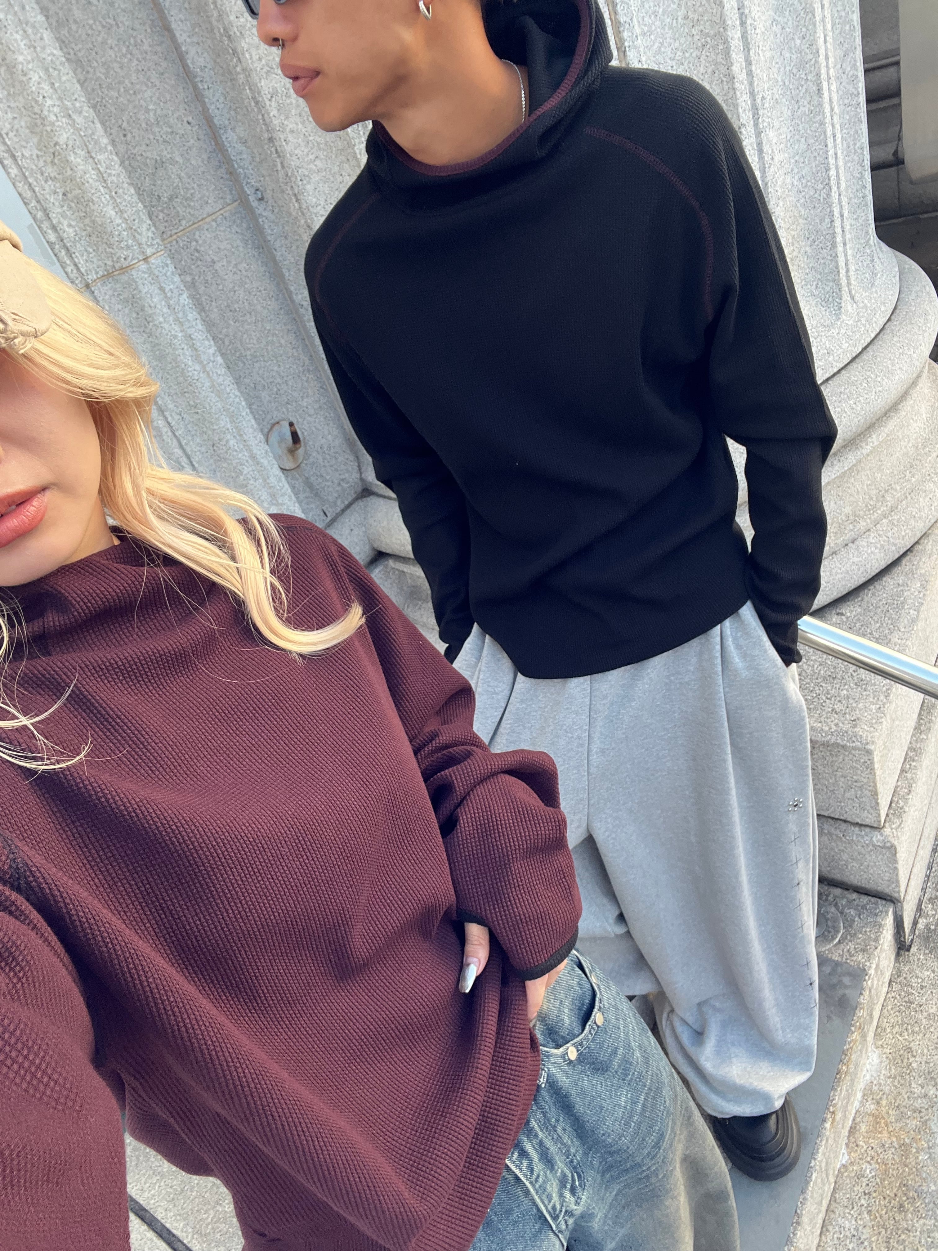 【即納】韓国トレンド armhole waffle raglan hoodie