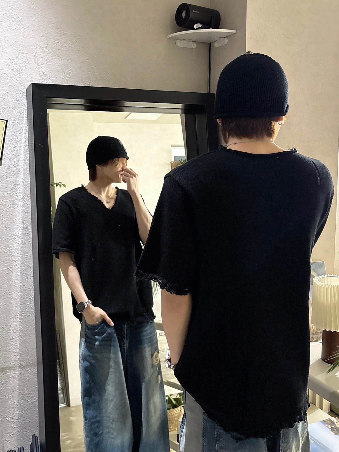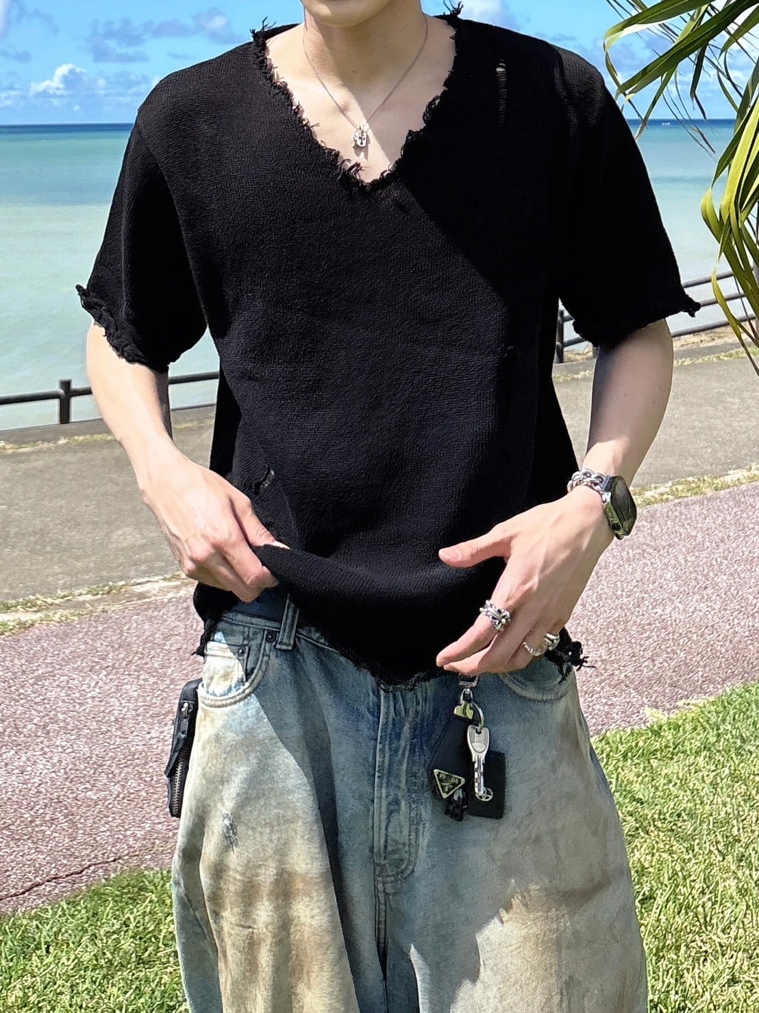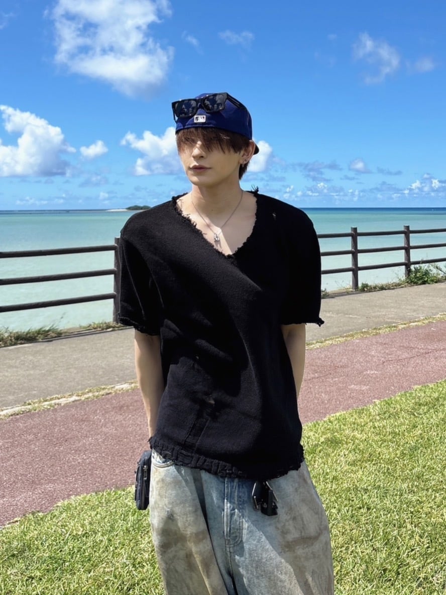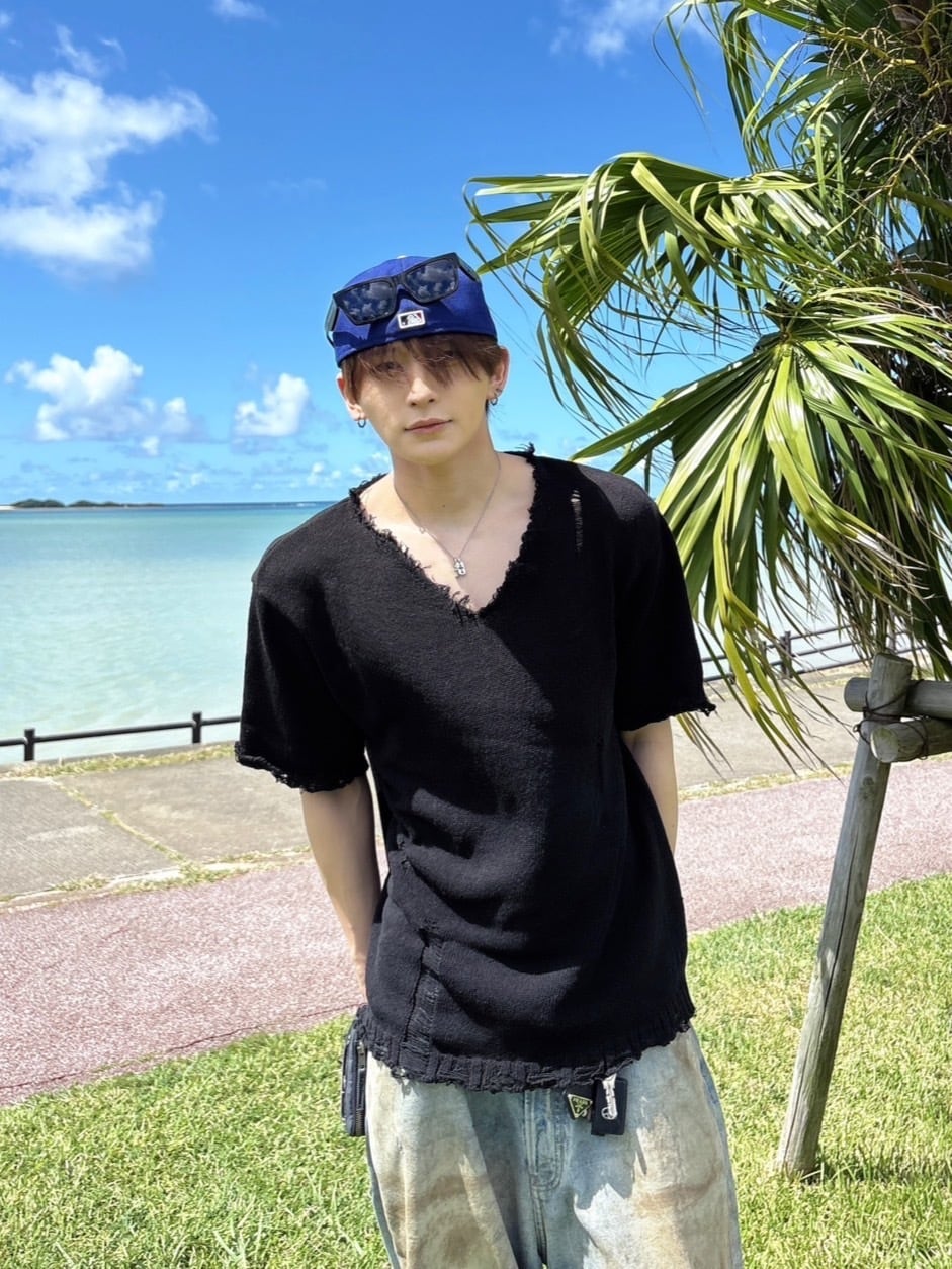 【即納】RADIANT Vneck damage knit