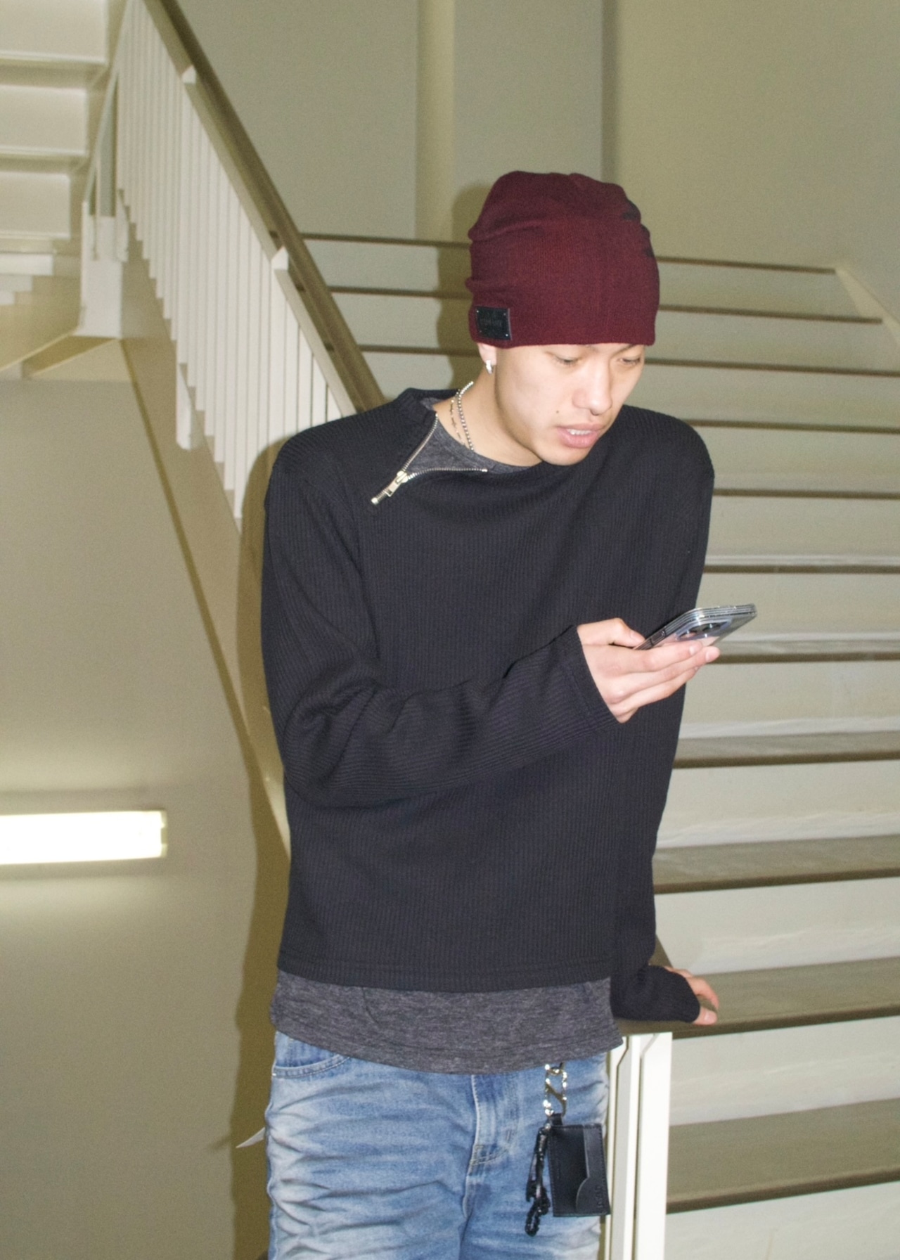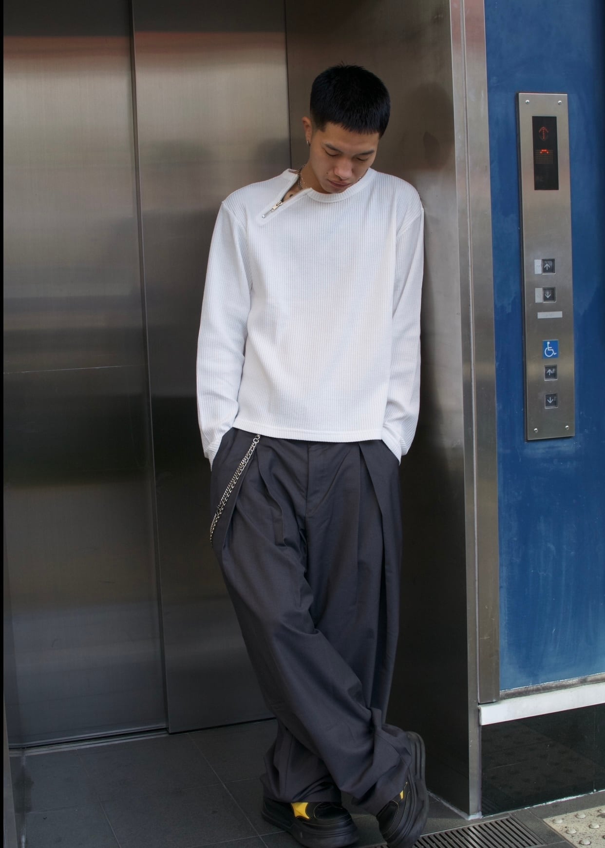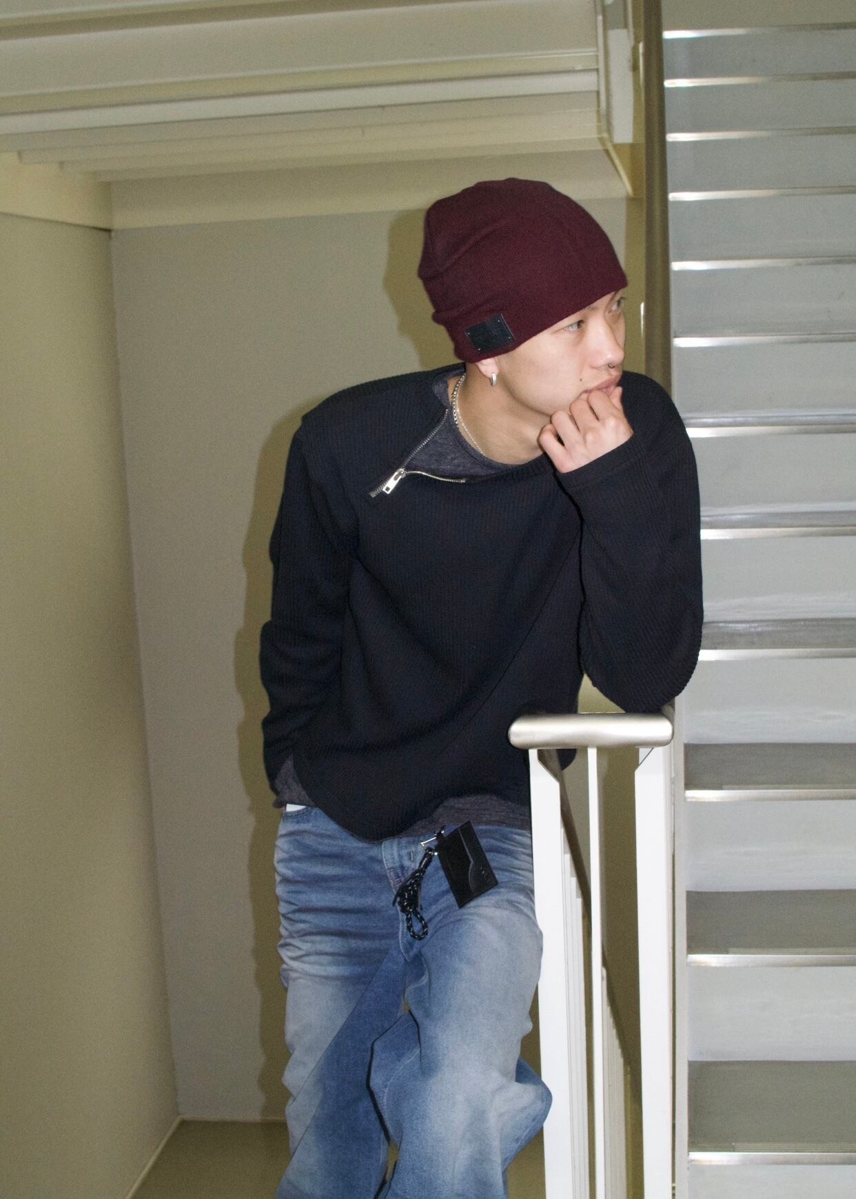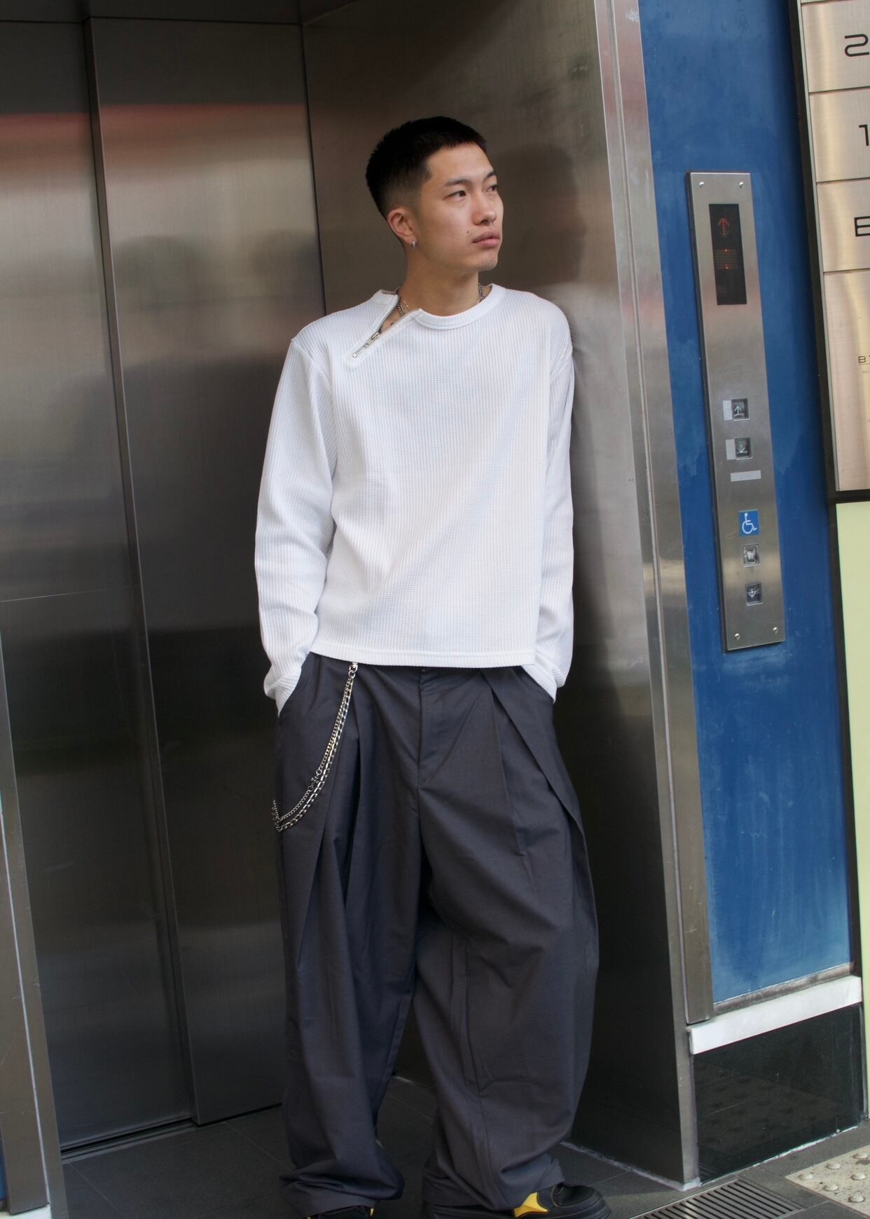 【即納】韓国トレンド Neckzip cropped tops