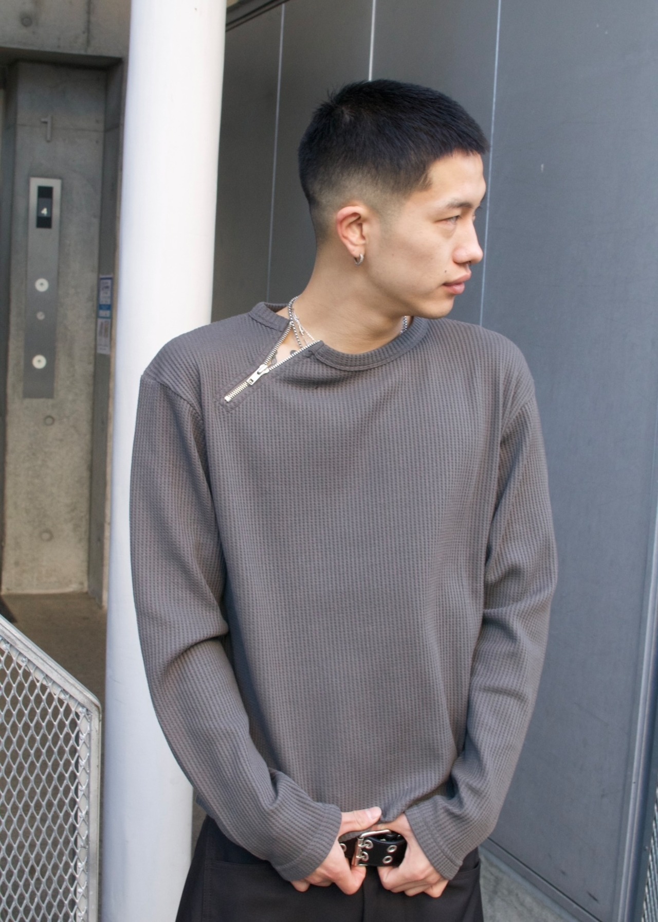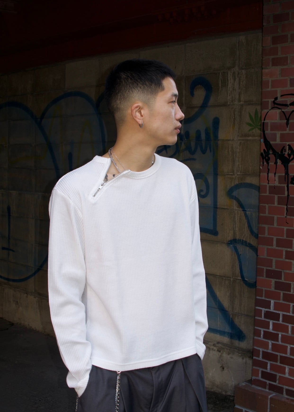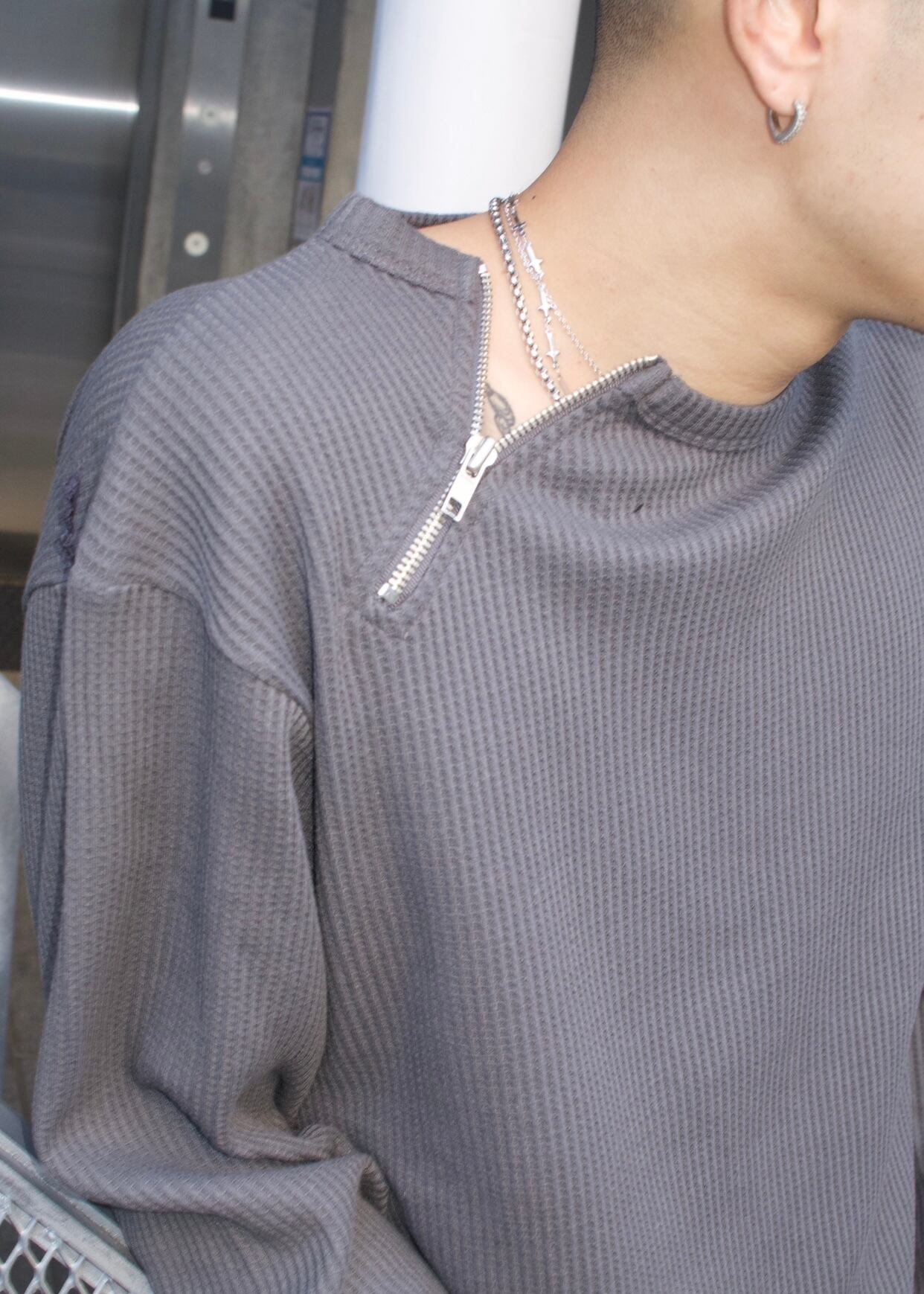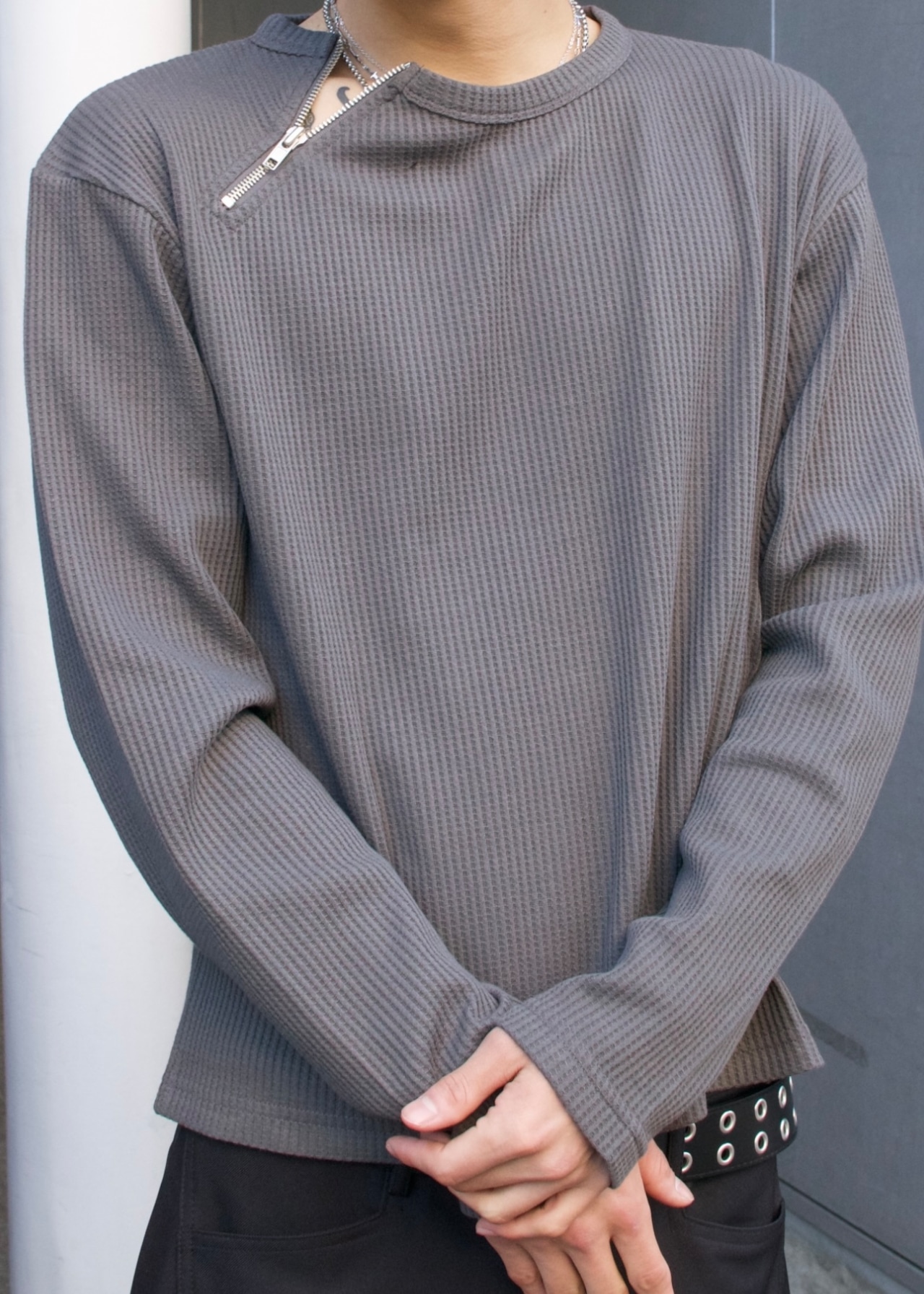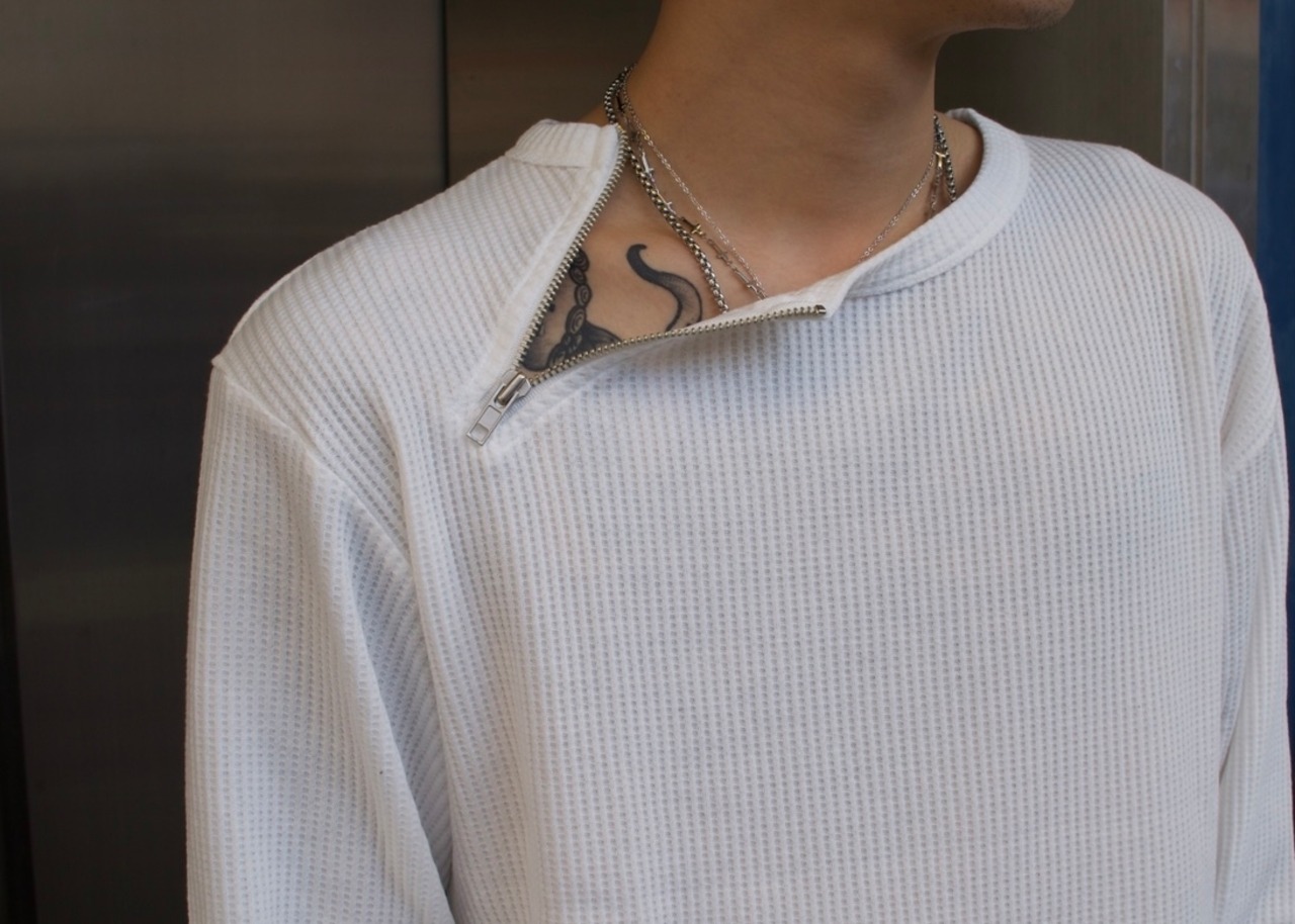 首元にアクセントになるzipがついており
