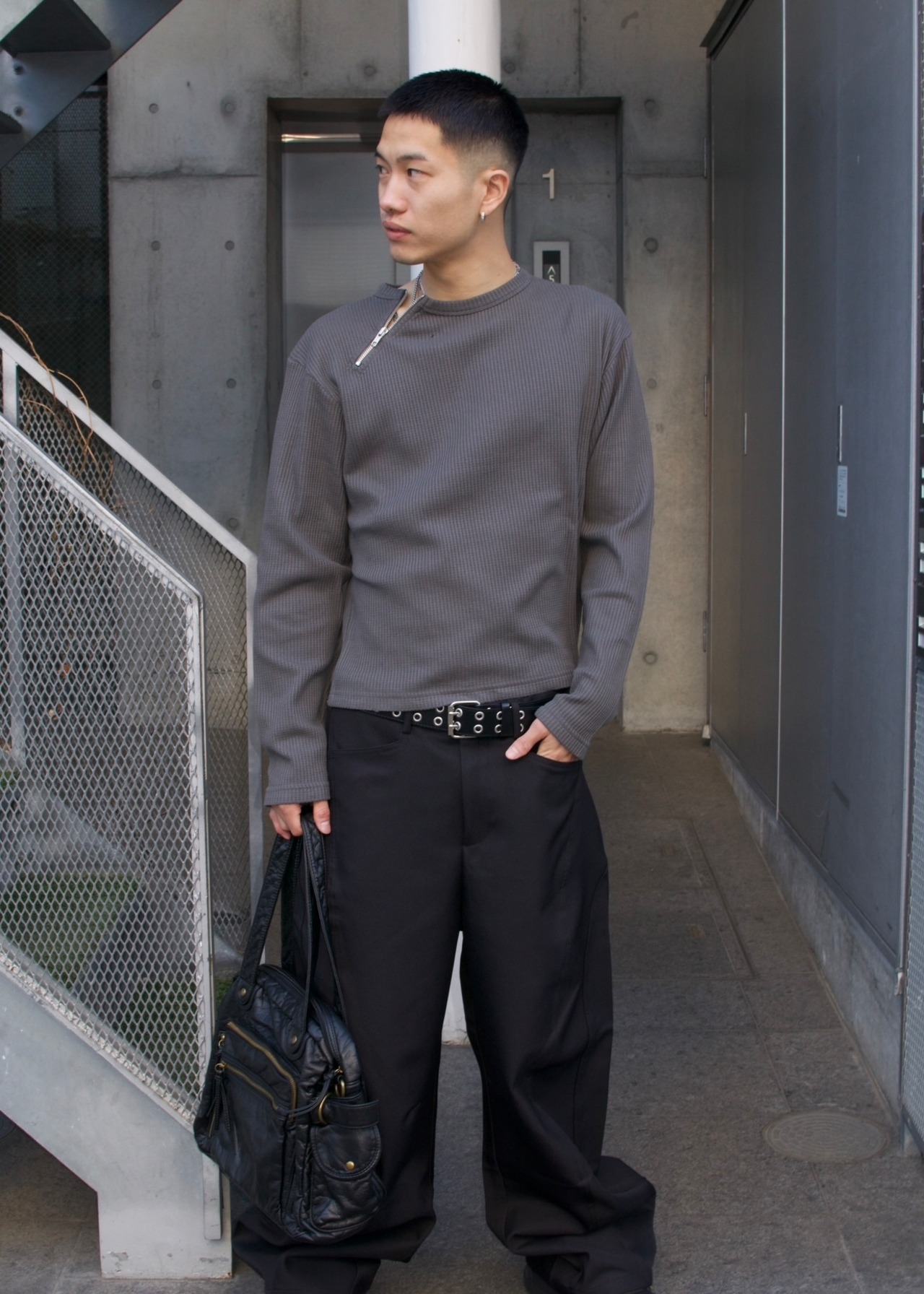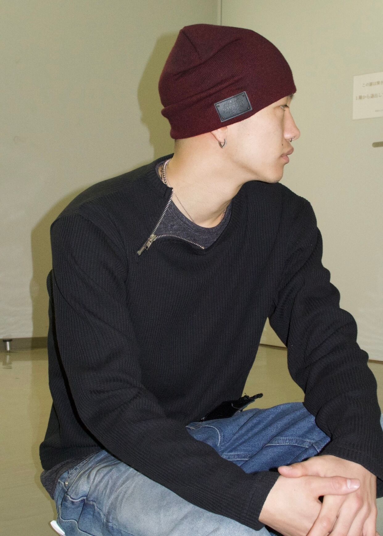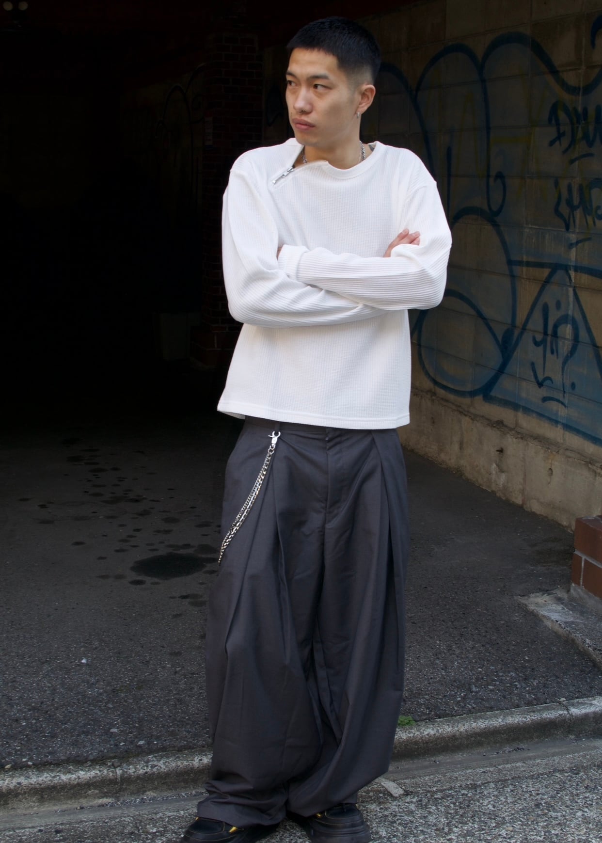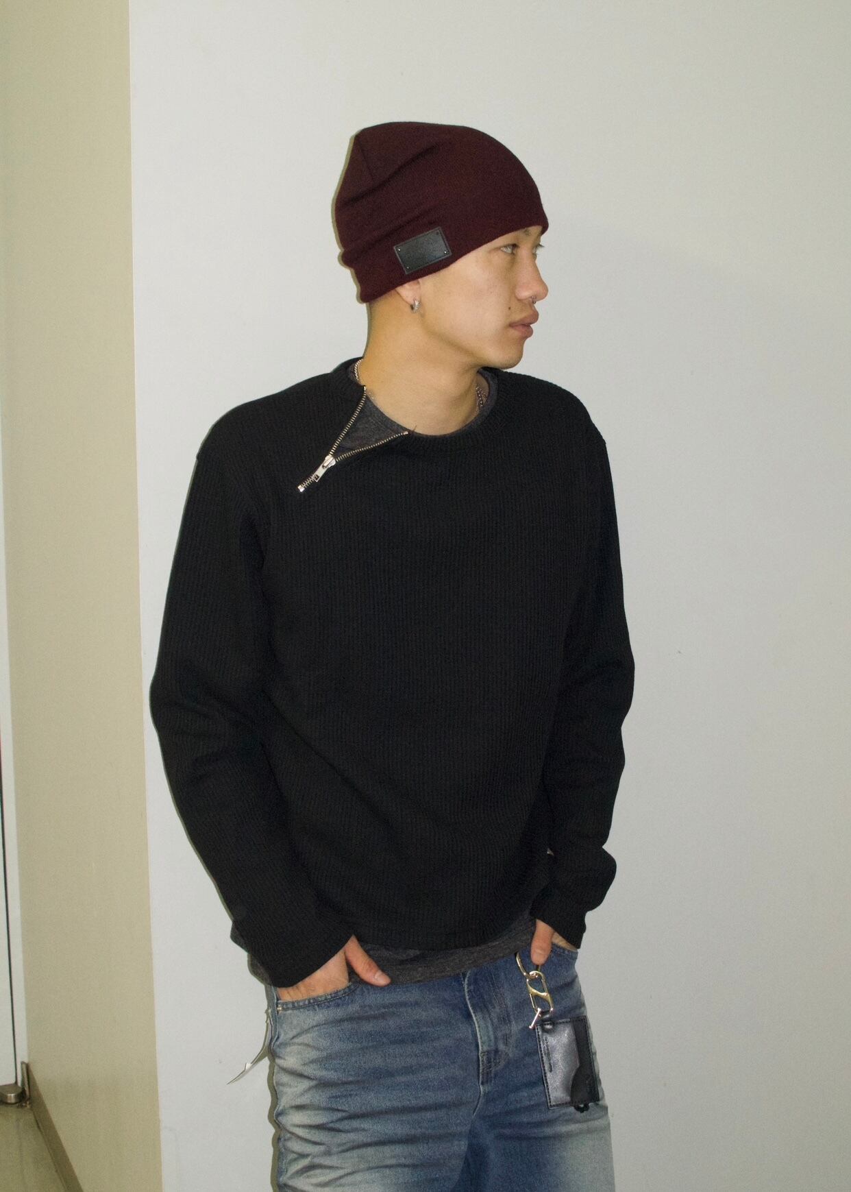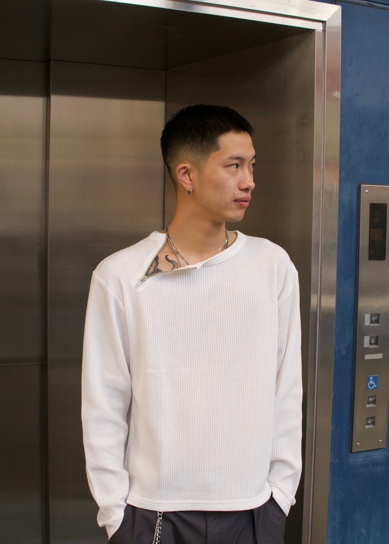 首元にアクセントになるzipがついており