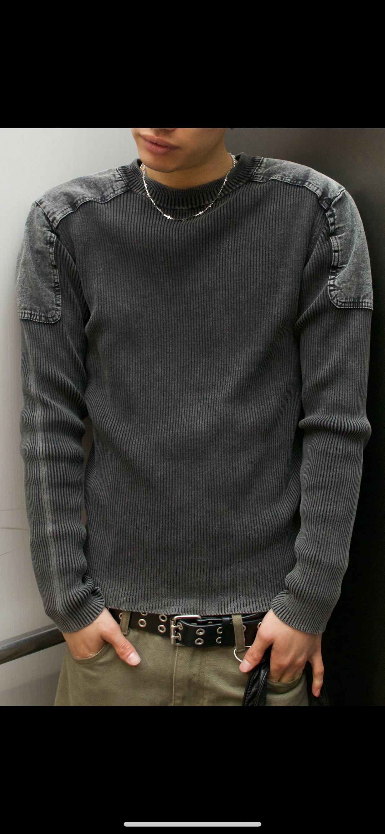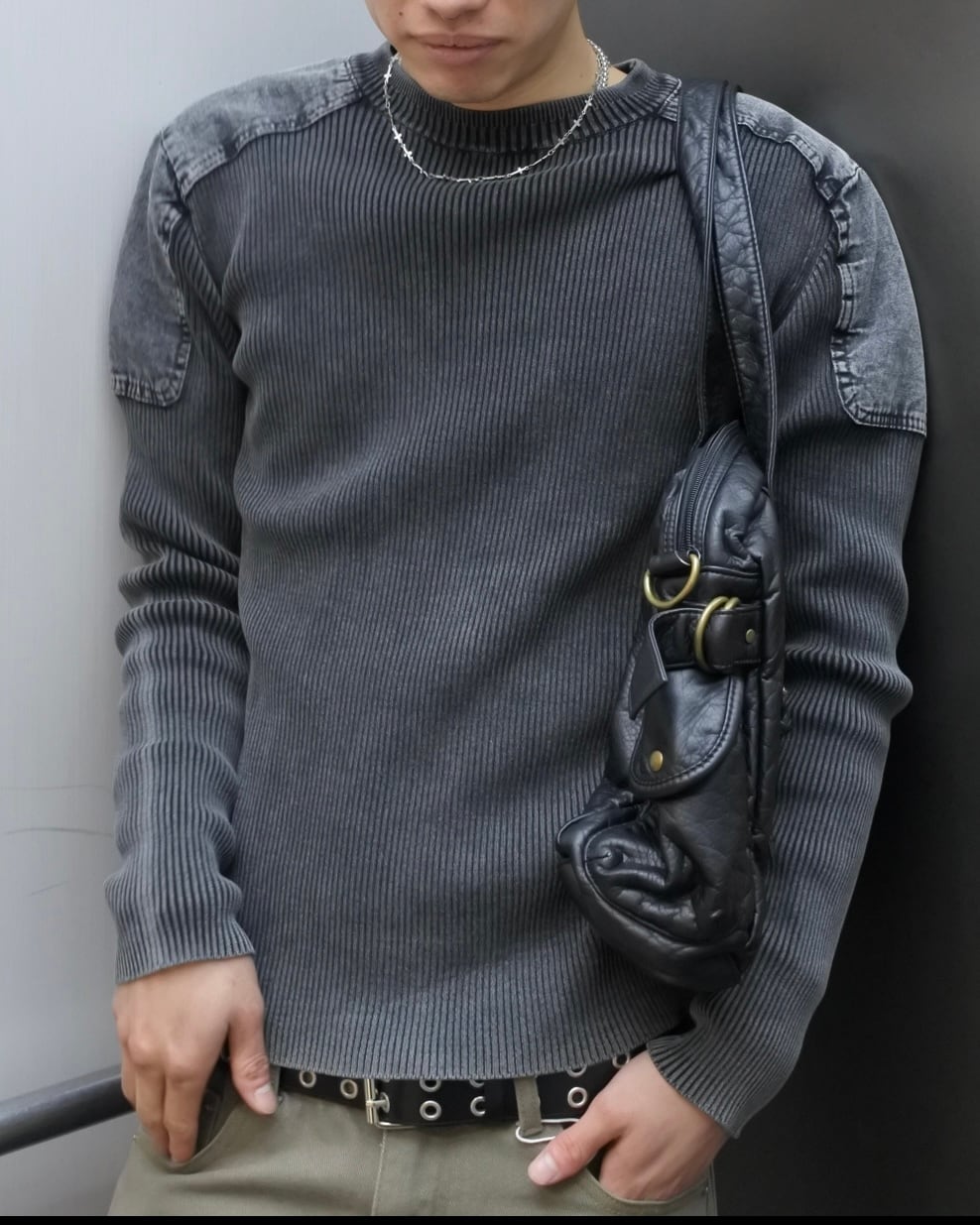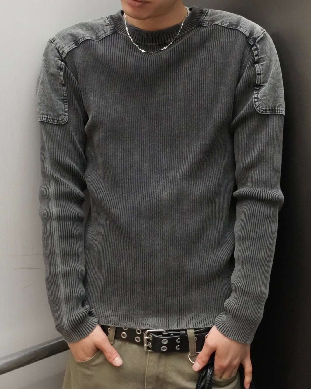 【即納】韓国トレンドファッション Denim mix rib knit