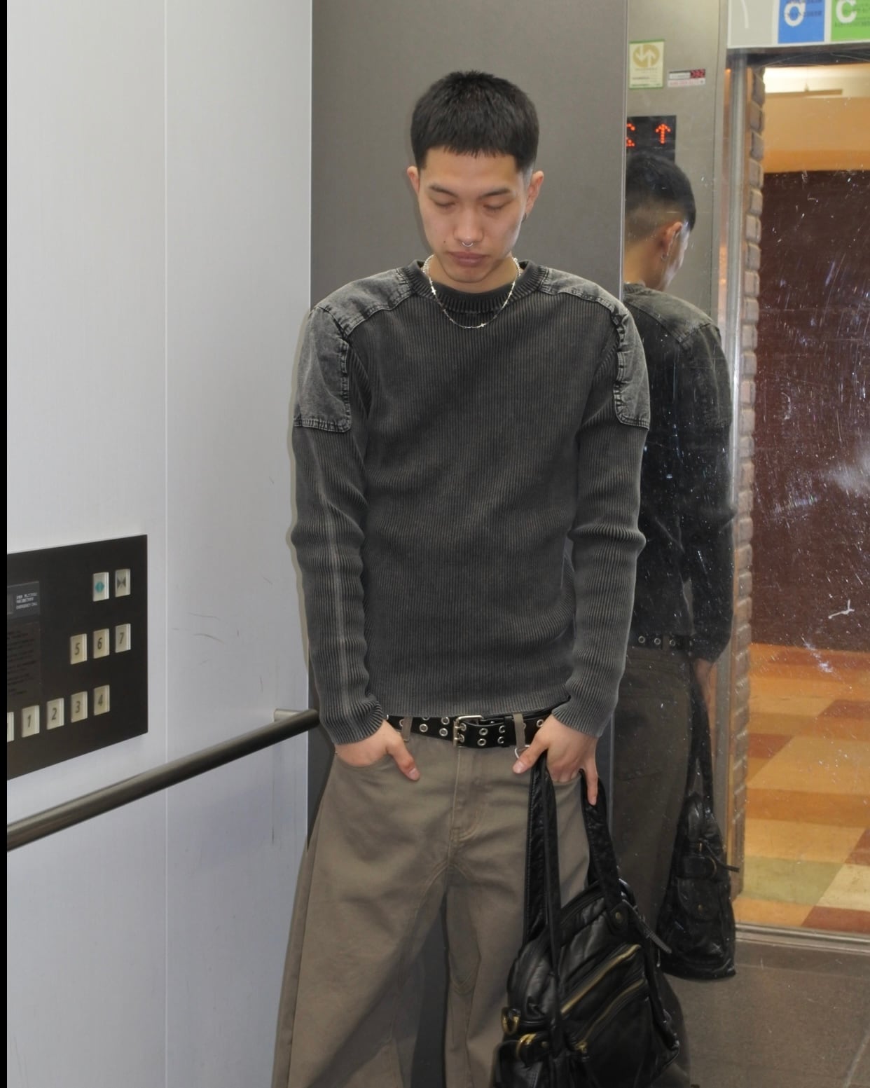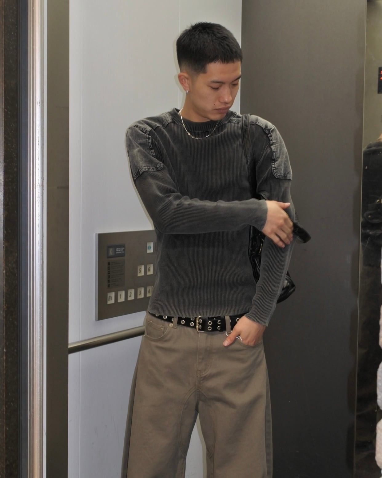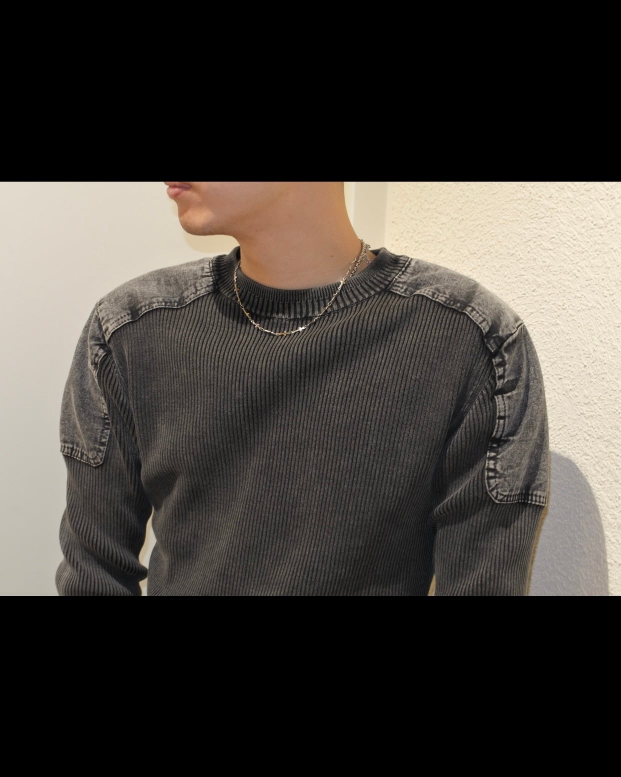 【即納】韓国トレンドファッション Denim mix rib knit