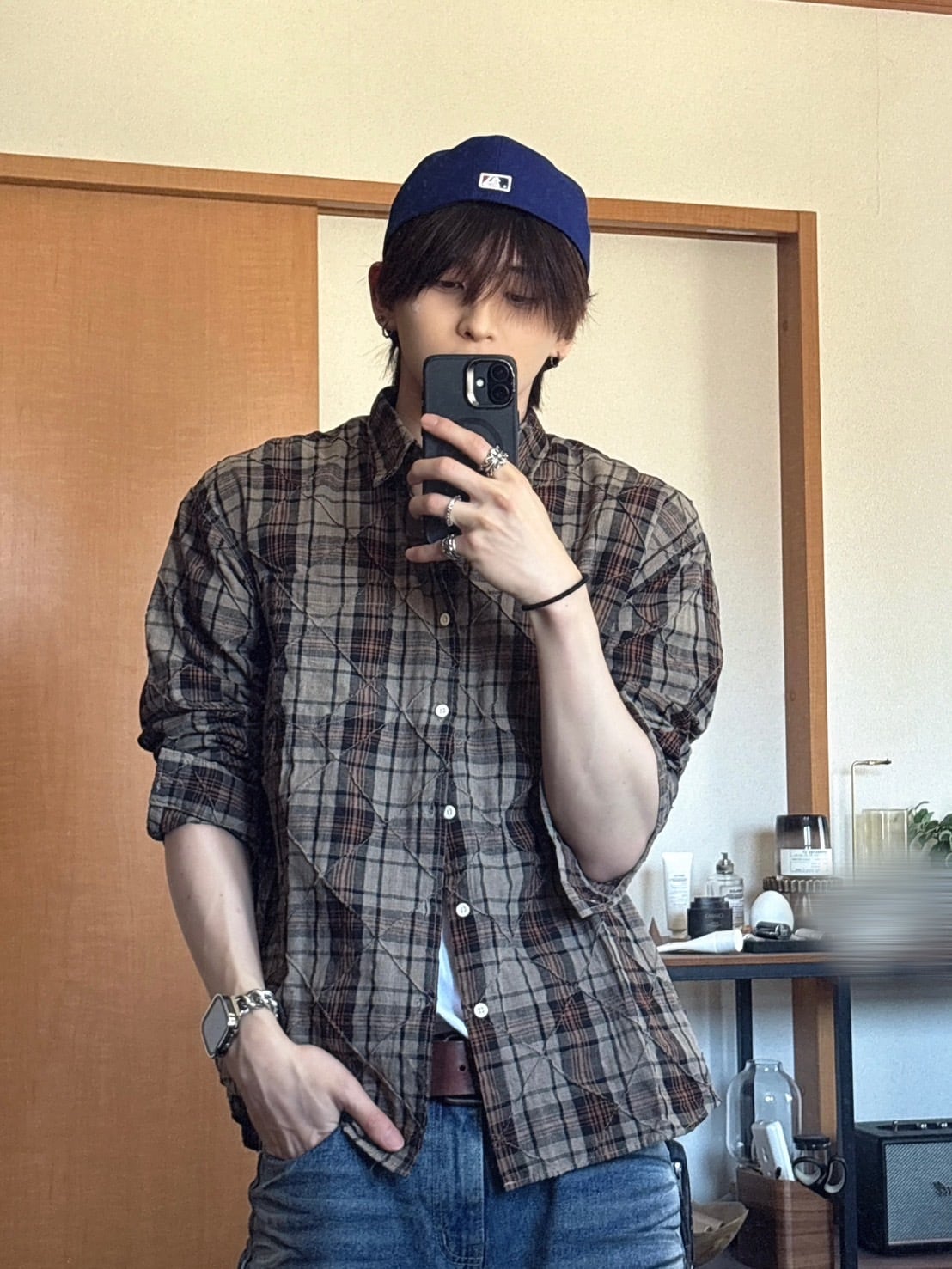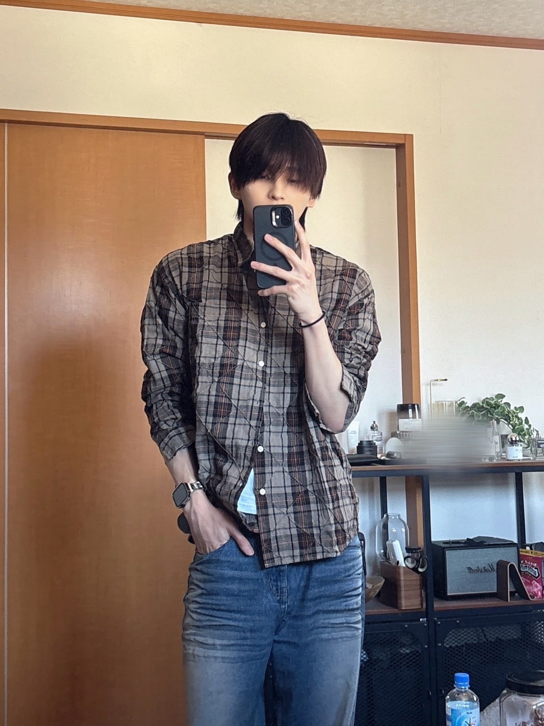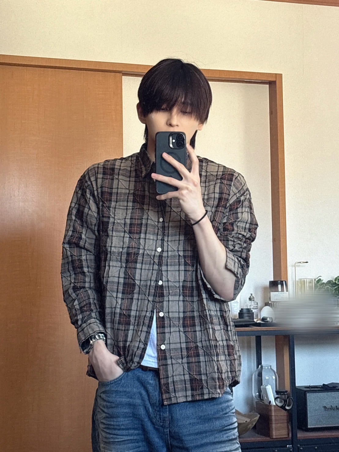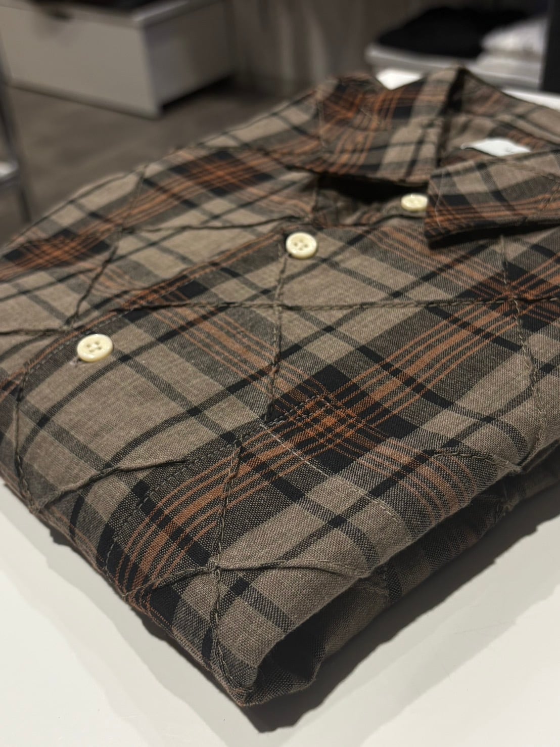 チェック柄にキルティングの細かいダメージ