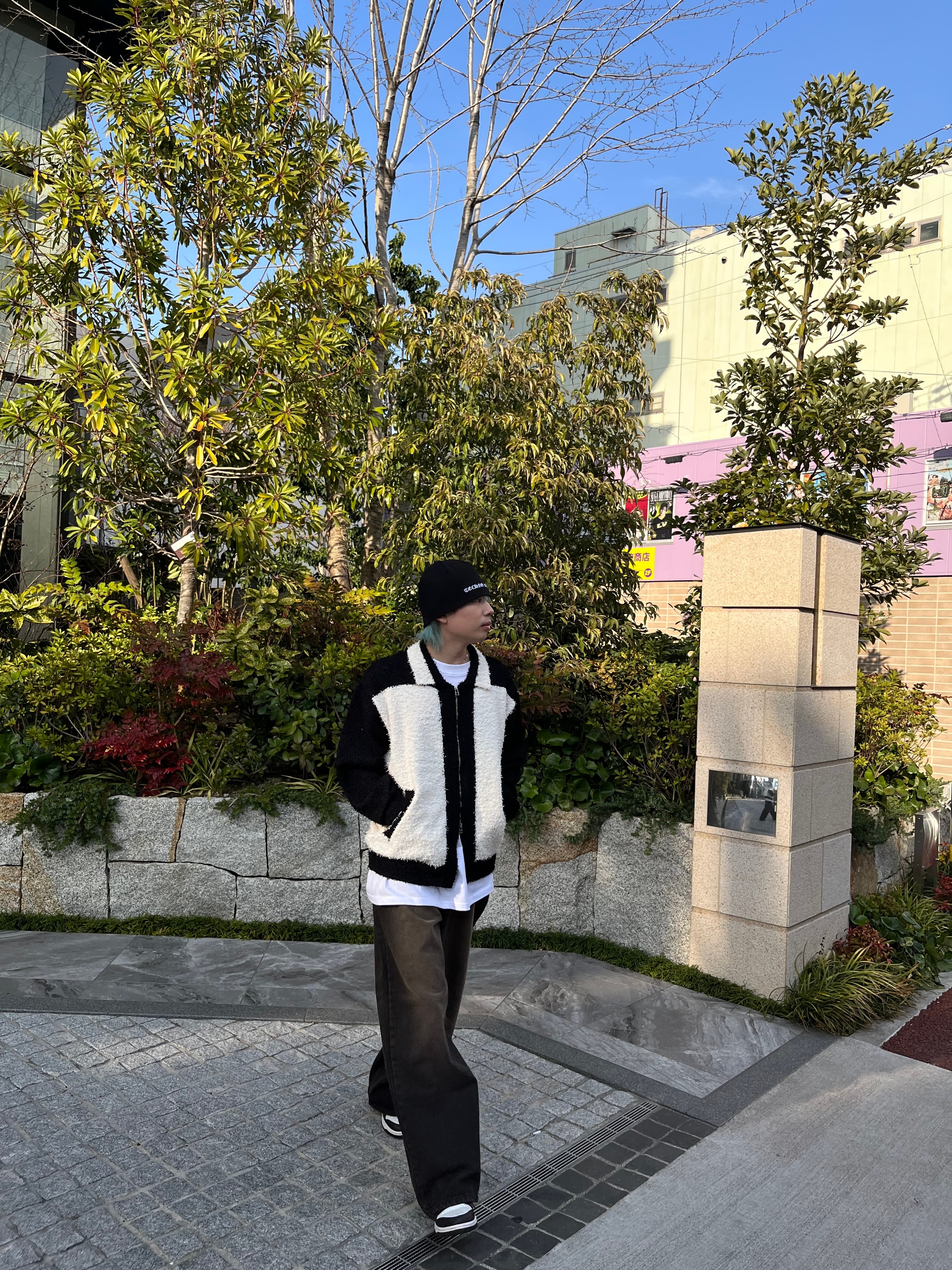 【即納】韓国トレンドファッション Bi-color wzip knit jacket