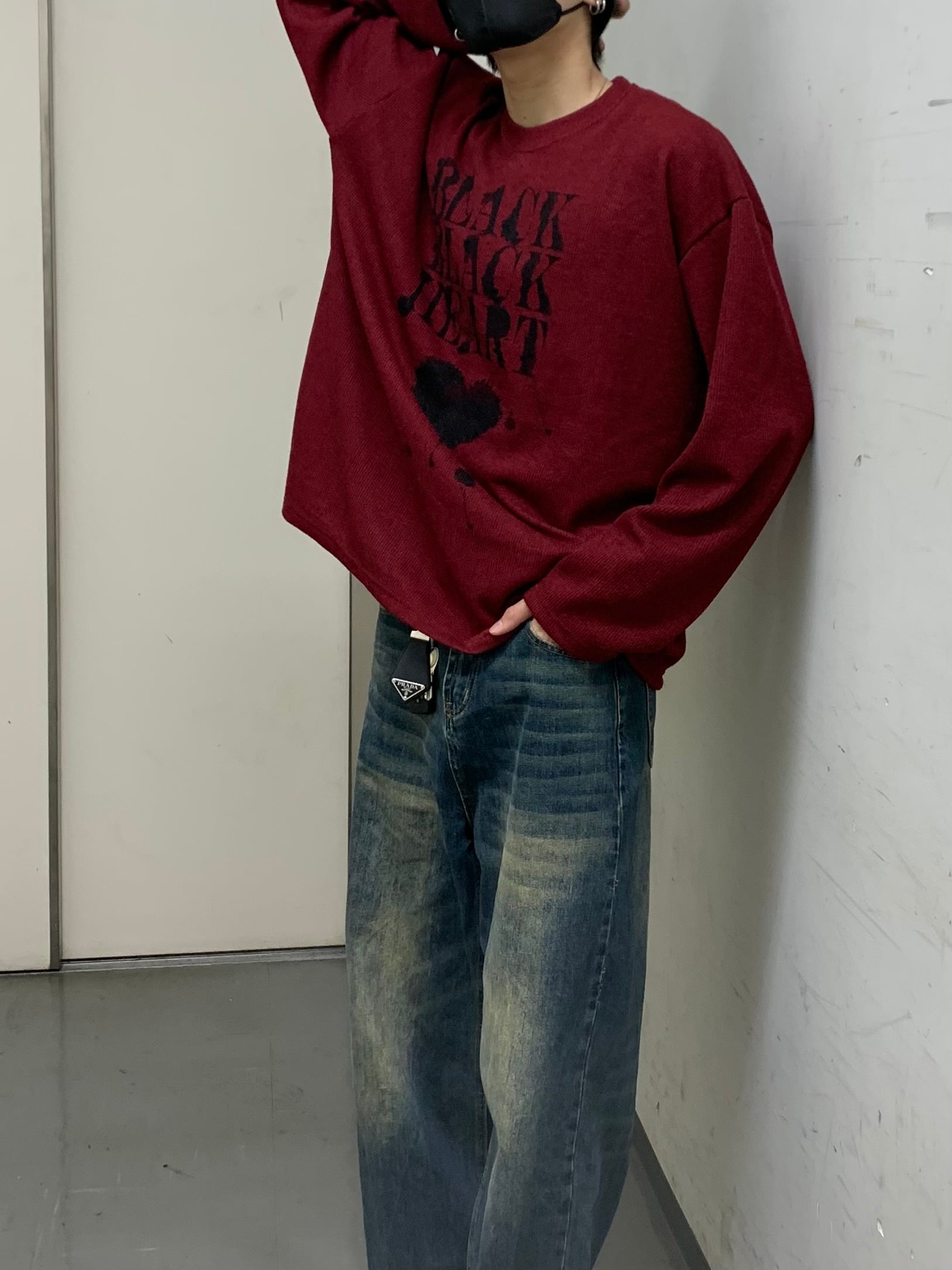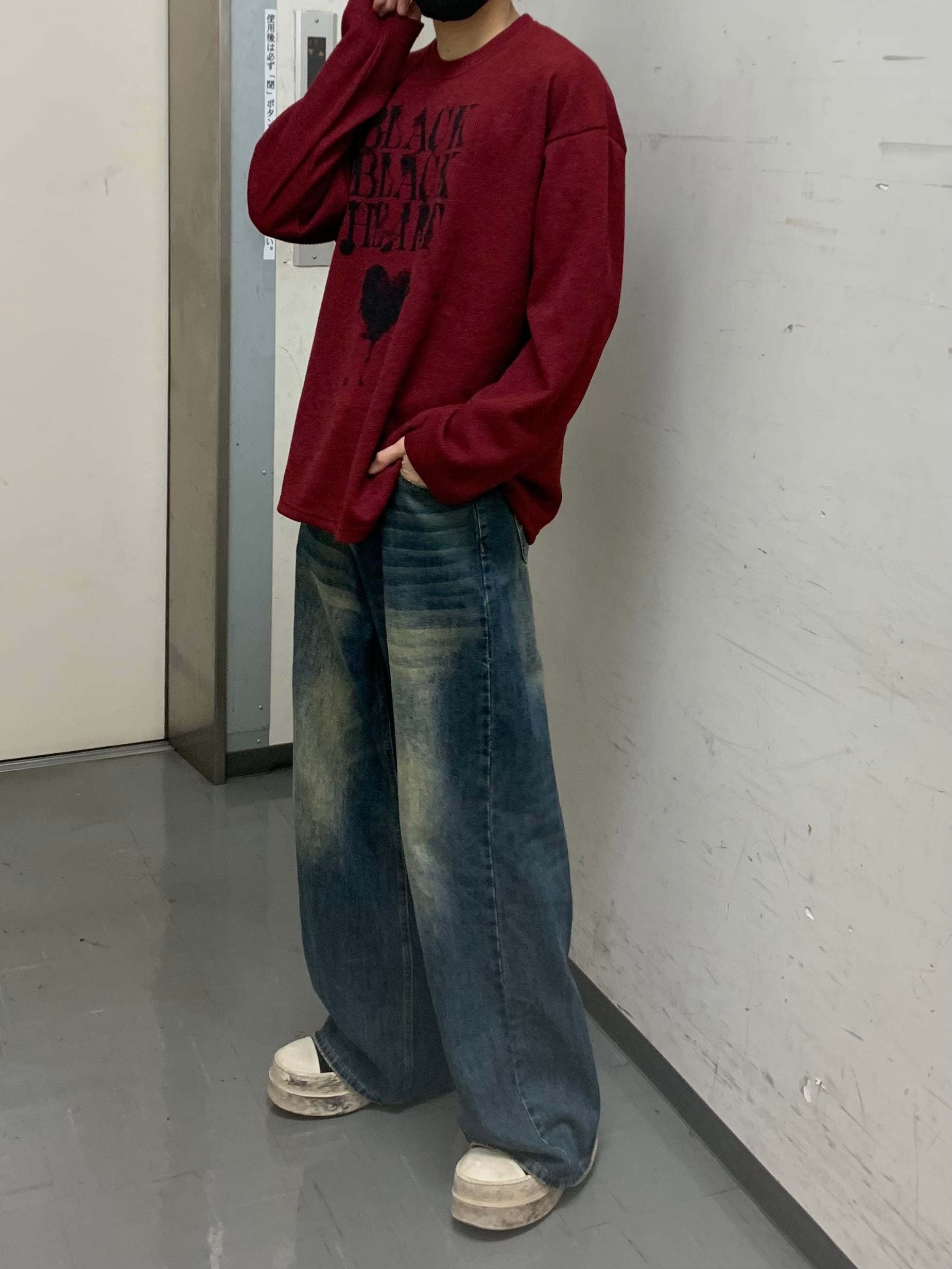 【即納】韓国トレンド BLACK HEART thermal tops