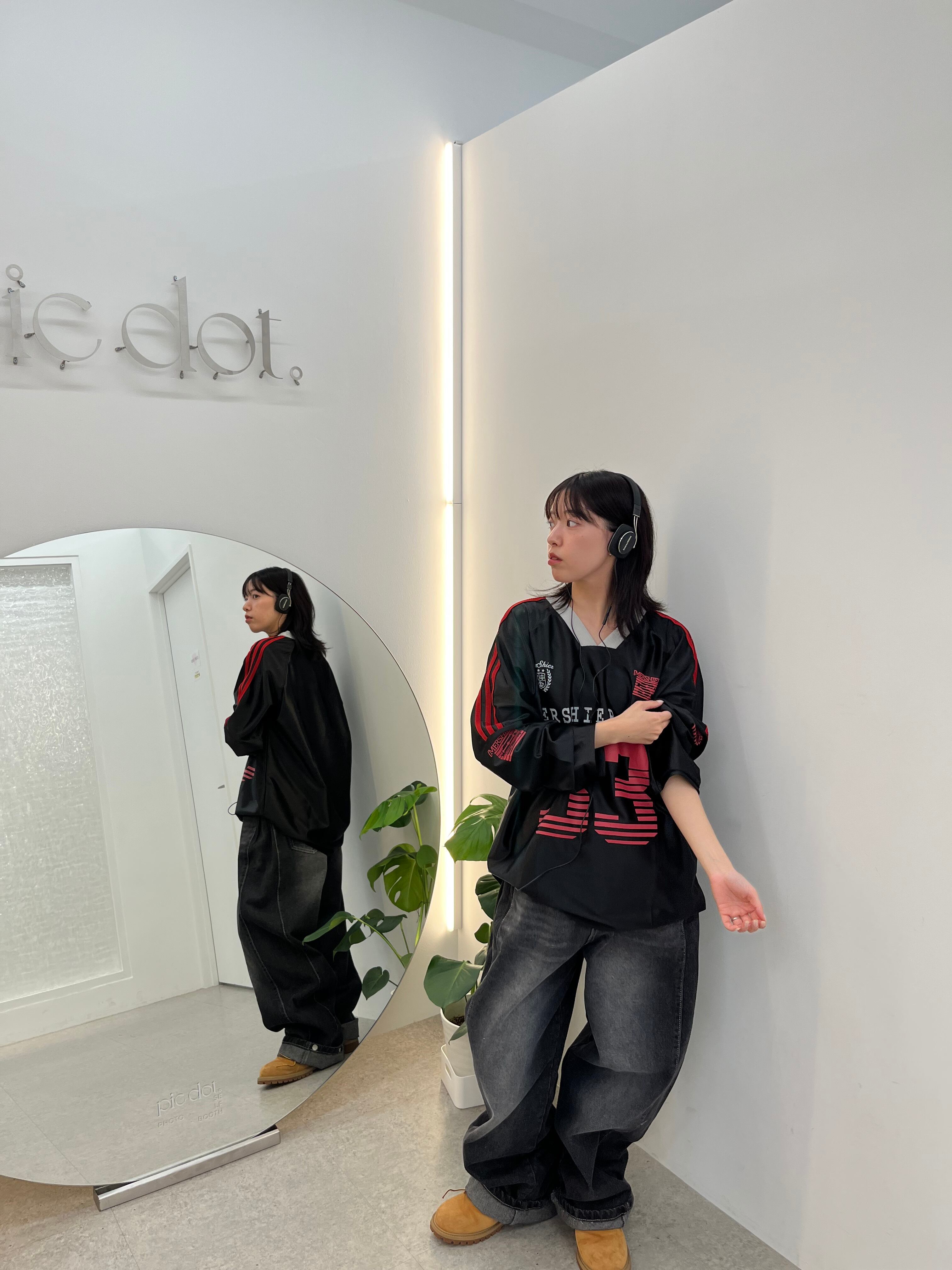 デザインが特徴的! カジュアルなコーディネートは
