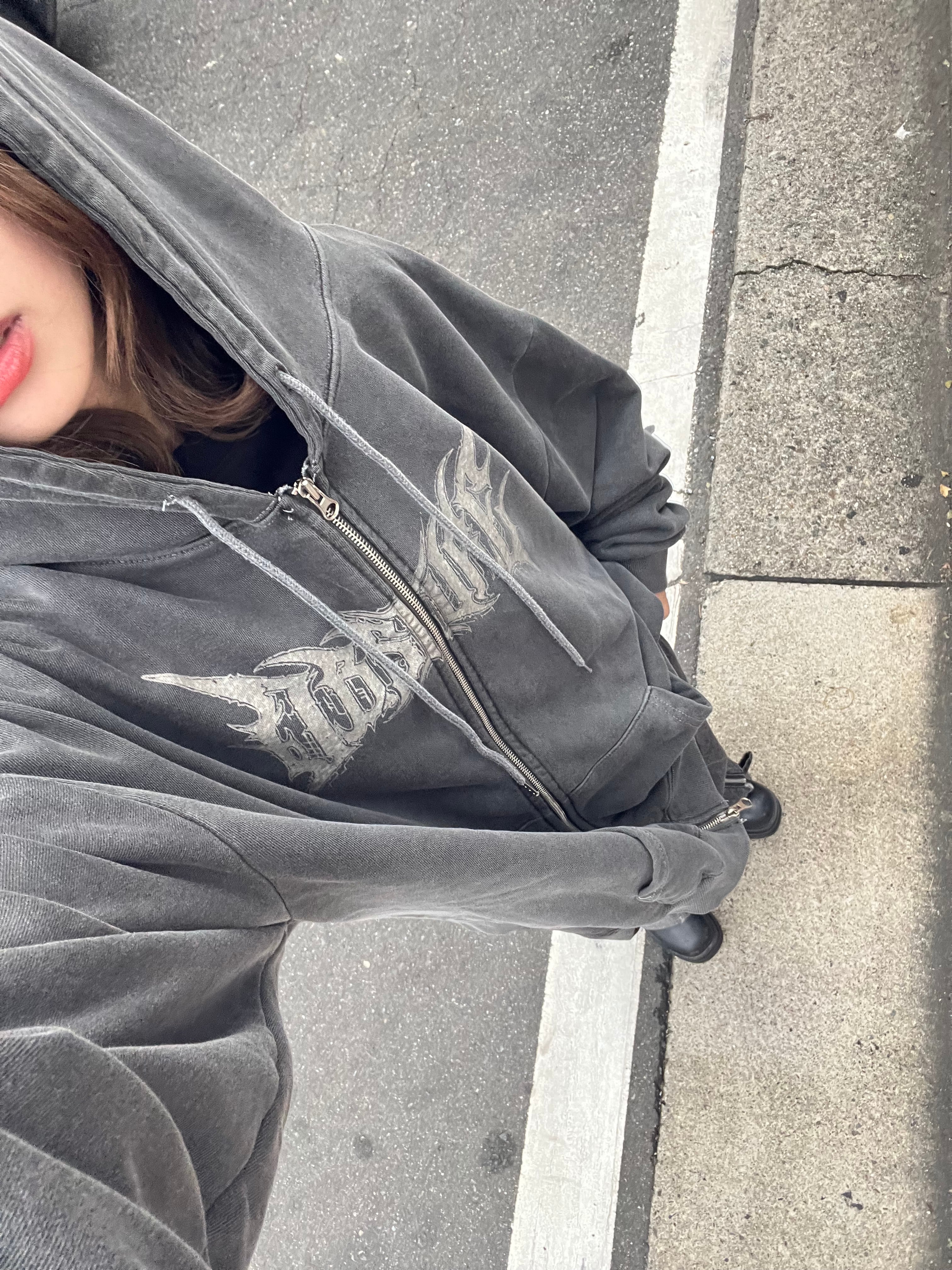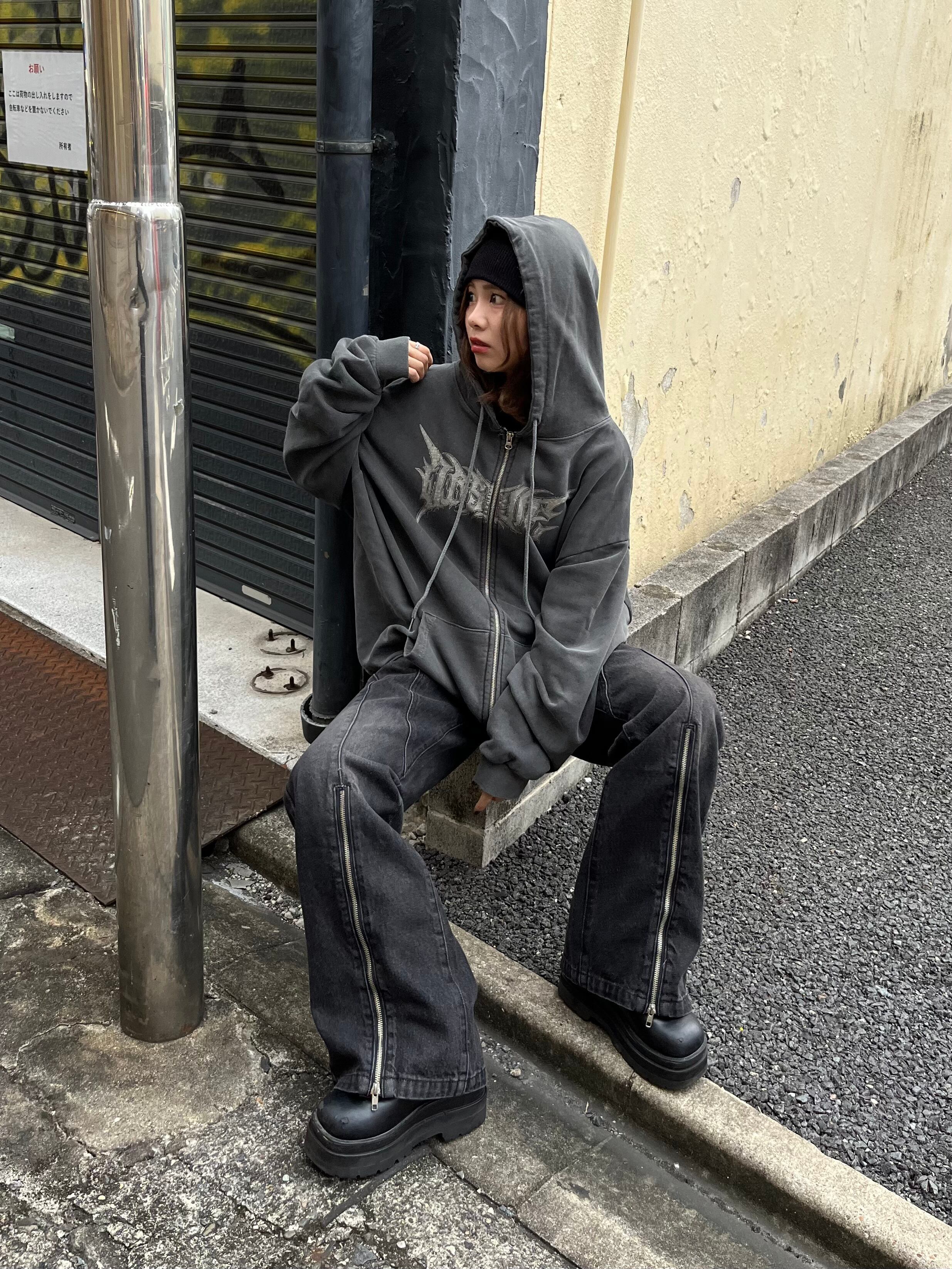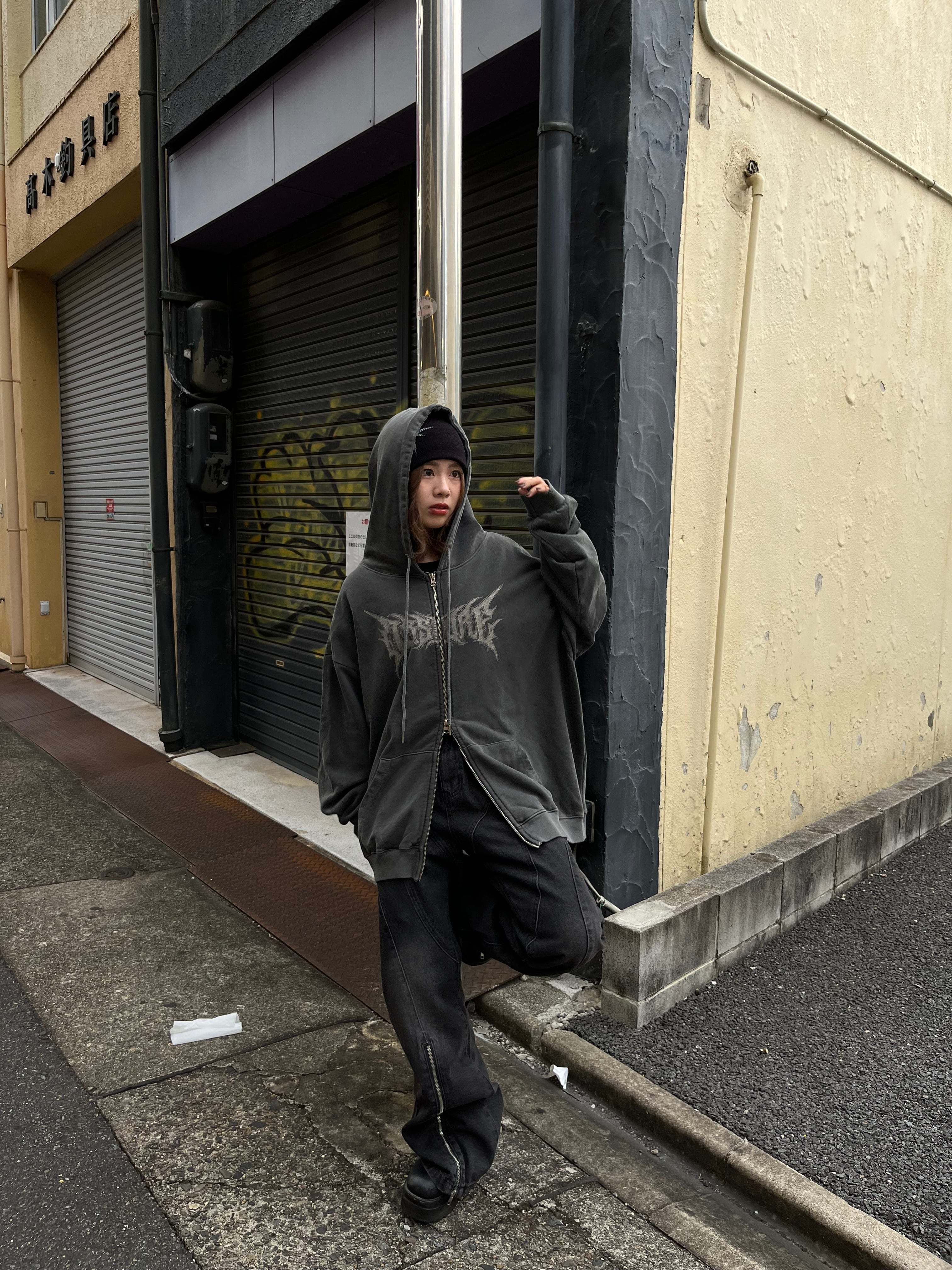 【即納】韓国トレンド Gothic logo wzip hoodie