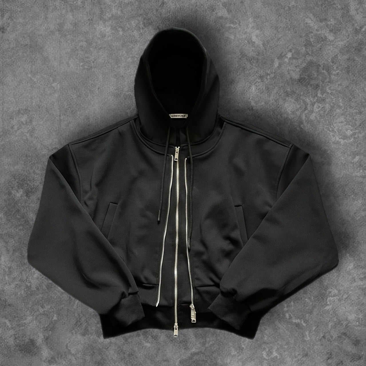 ジップがWで付くことで重ね着をしているようなレイヤードスタイルが一枚で完成する魅力的なパーカー◎